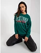 Tmavě zelená mikina s potiskem bez kapuce .
