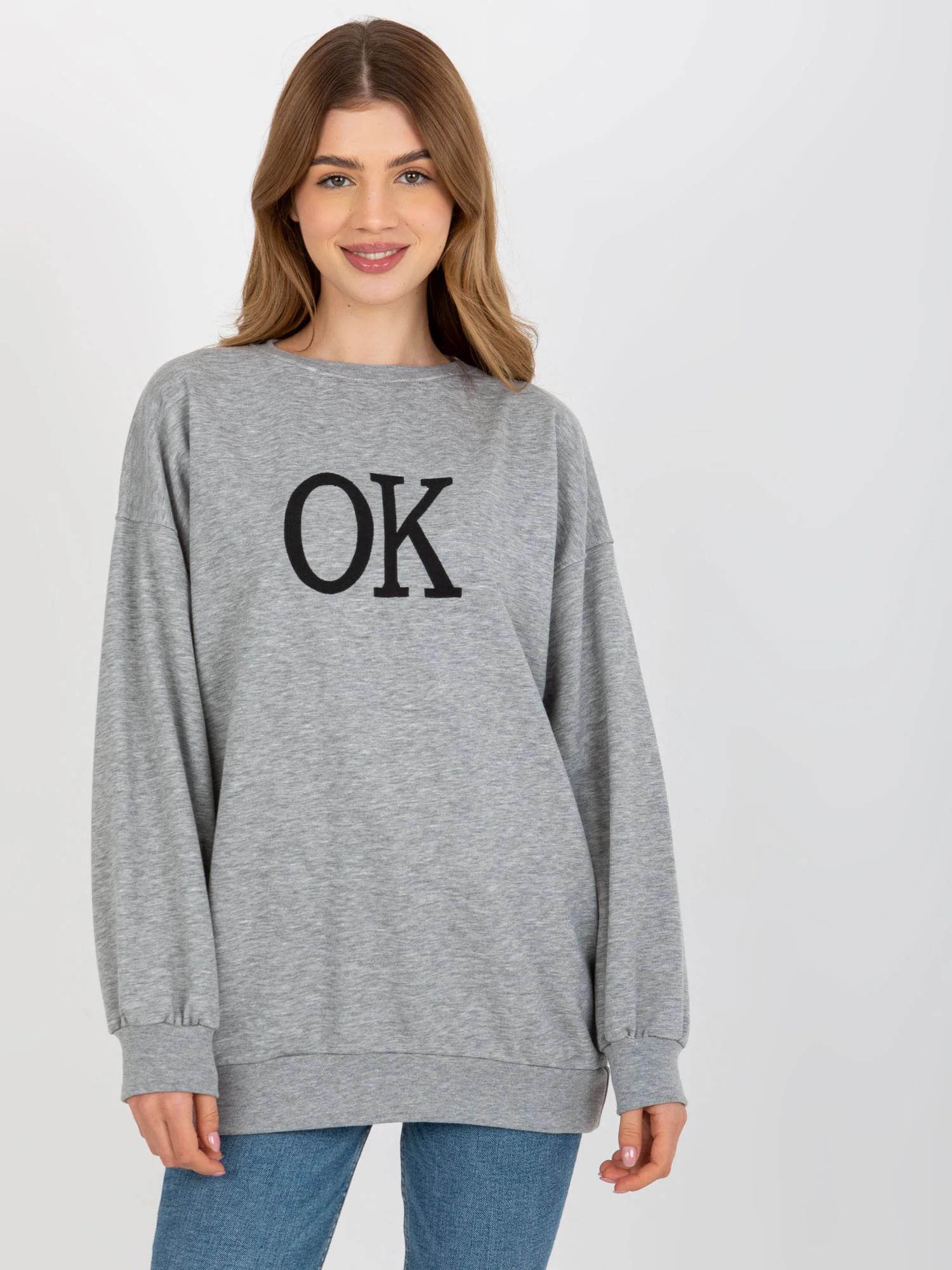 Šedá volná oversize mikina bez kapuce s výšivkou .