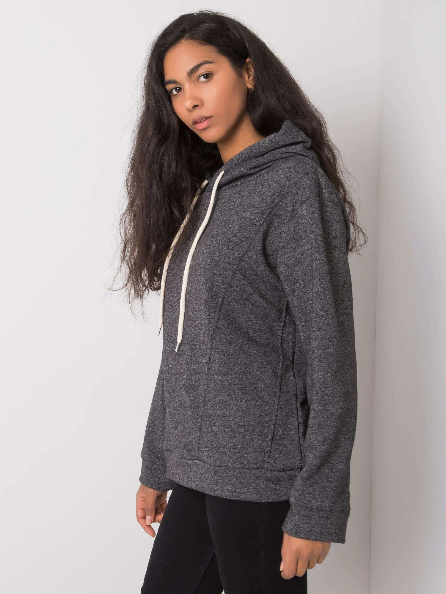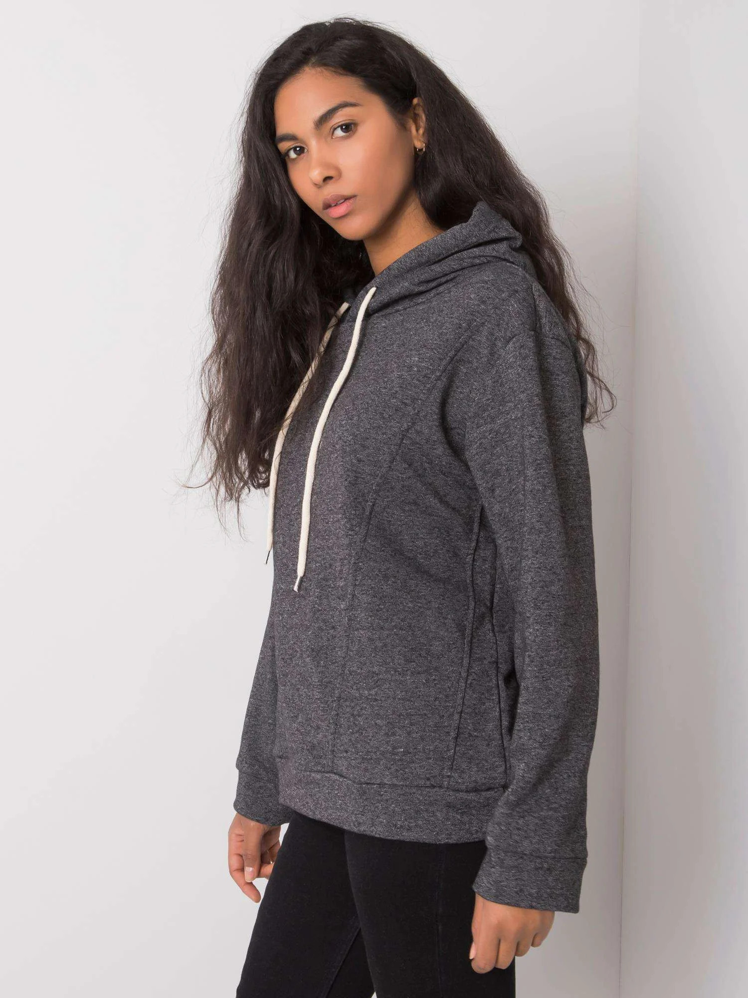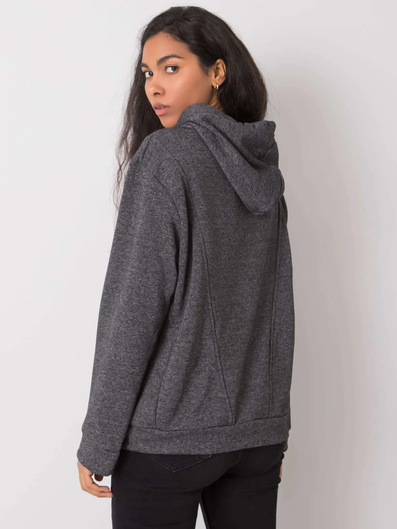 Tmavě šedá dámská mikina s kapucí.