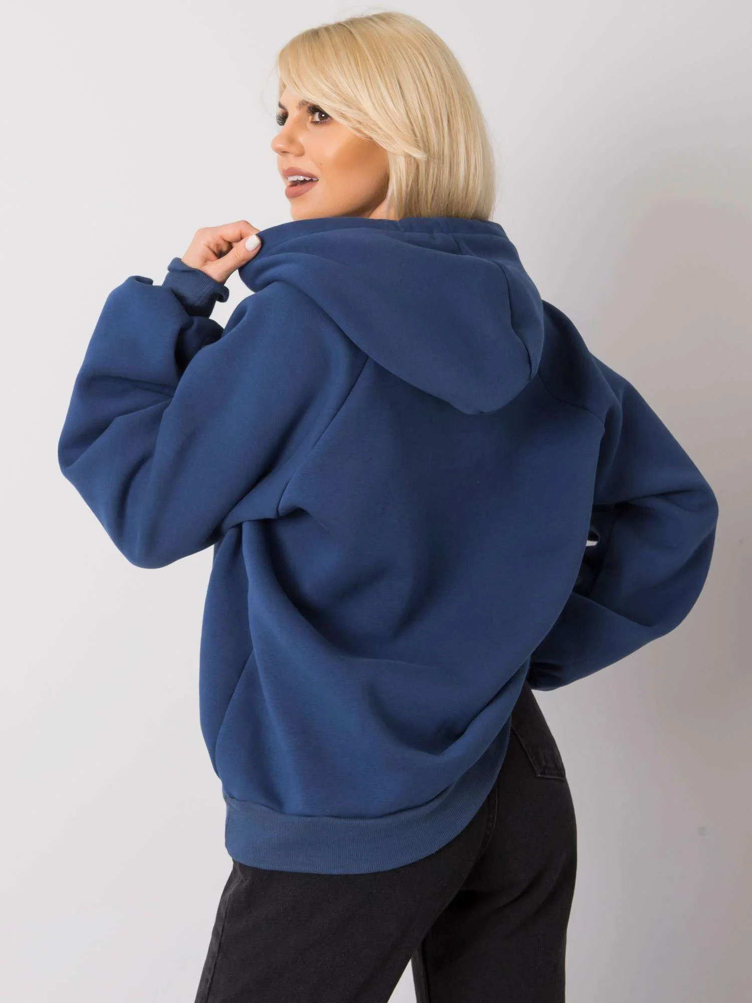Tmavě modrá zateplená mikina s kapucí.