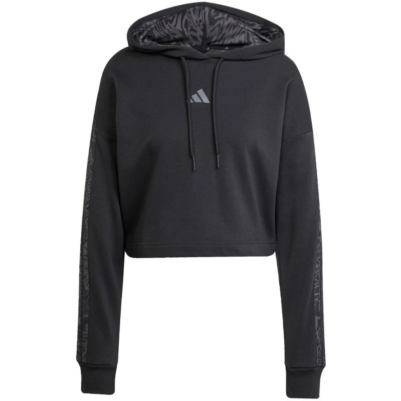 Dámská mikina adidas Essentials 3 Stripes Print French Terry Hoodie black JC6244