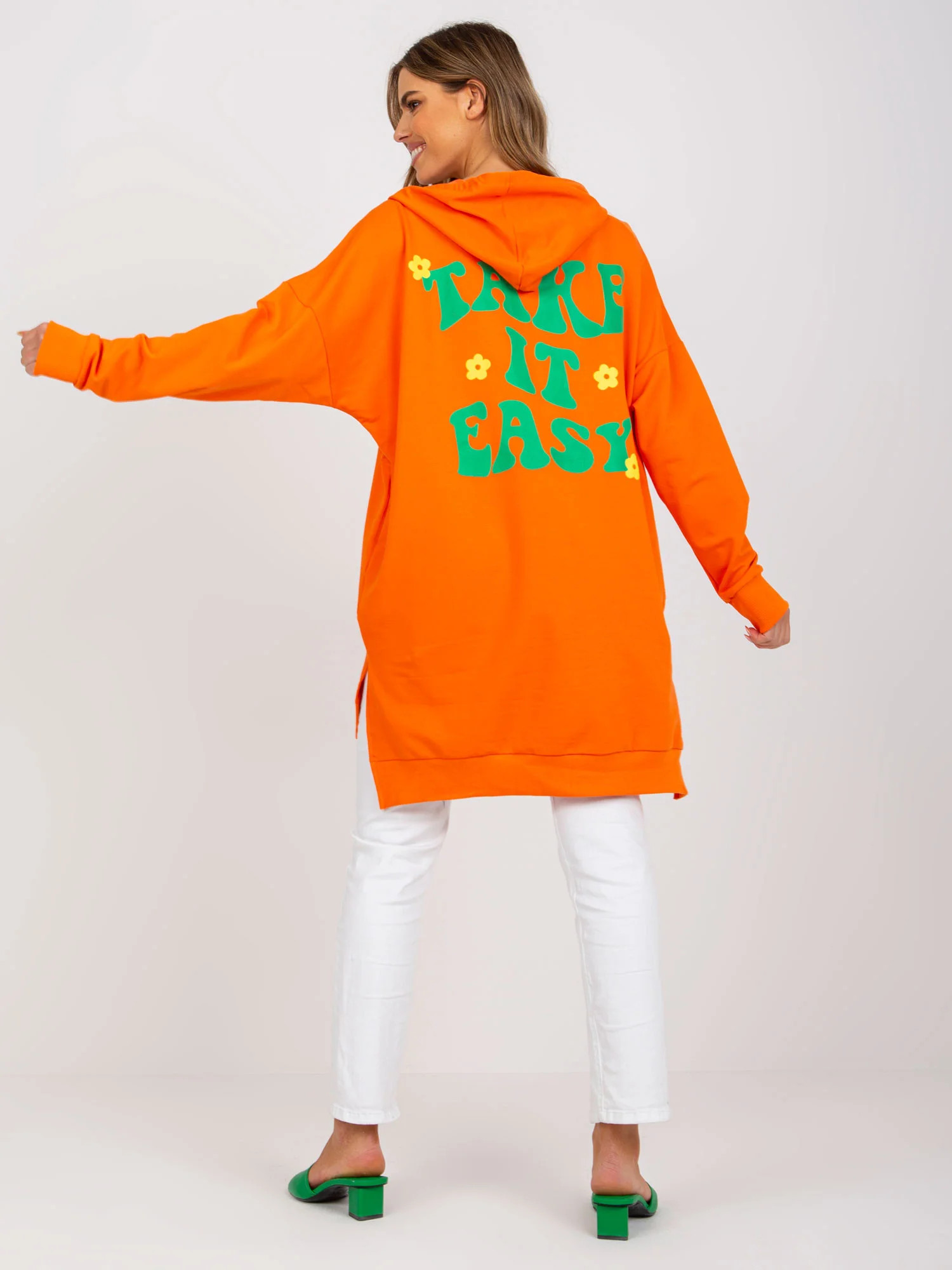 Rozměry mikiny v jedné velikosti měřené na plocho: šířka v podpaží - 54 cm, délka rukávu - 58 cm, celková délka - 81 cm.