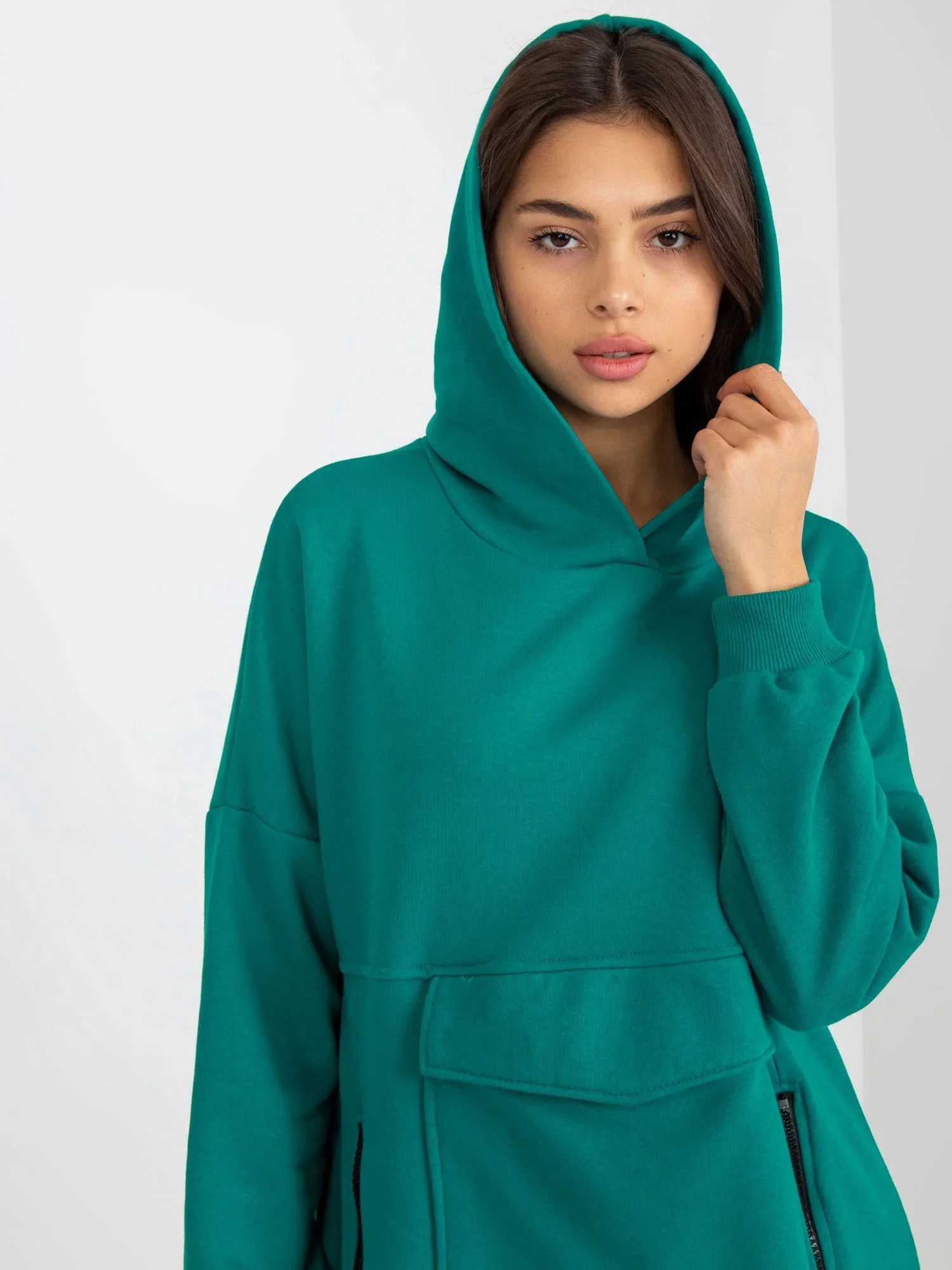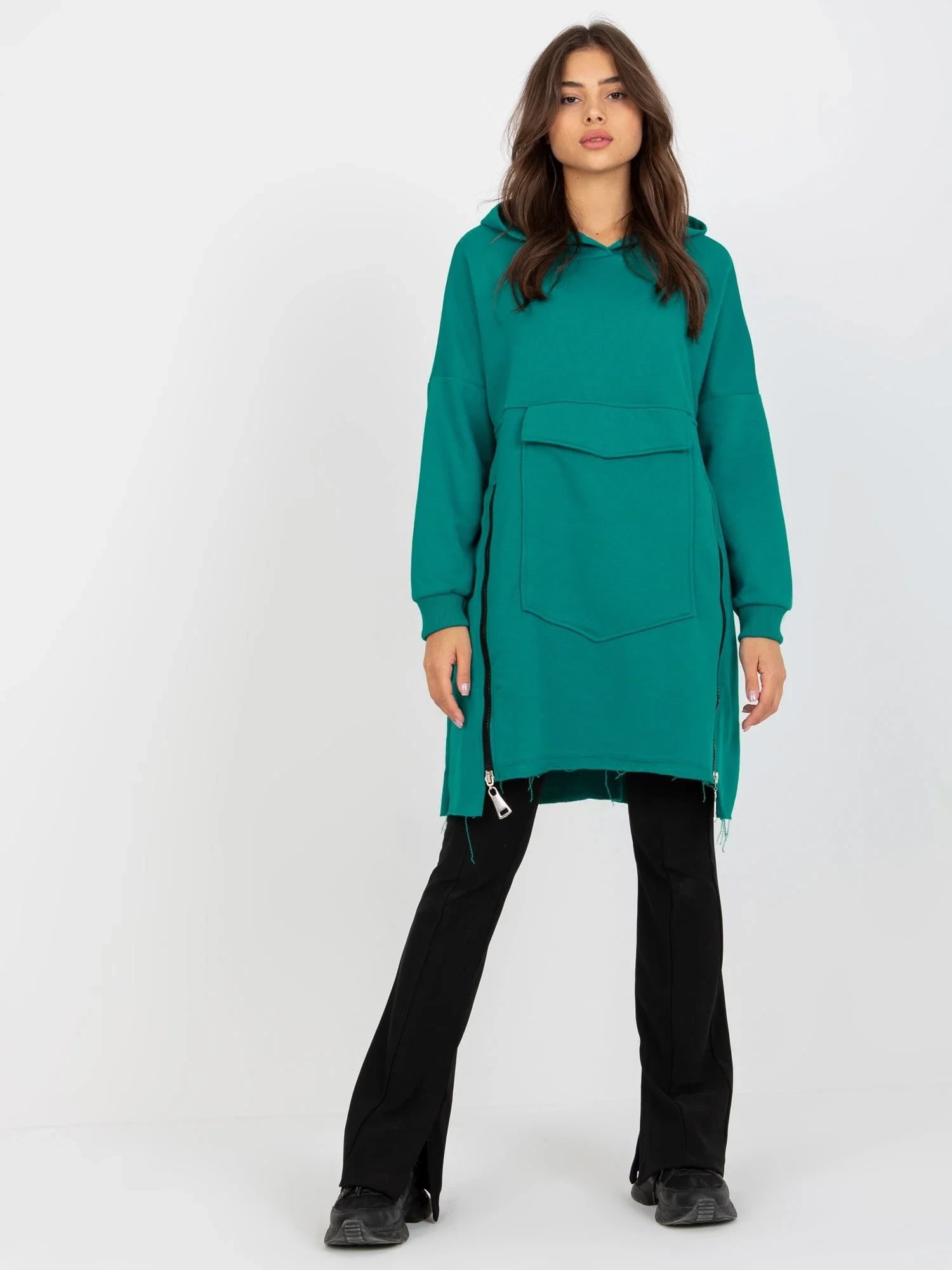 Rozměry mikiny v jedné velikosti měřené na plocho: šířka v podpaží - 54 cm, délka rukávu - 58 cm, celková délka - 81 cm.