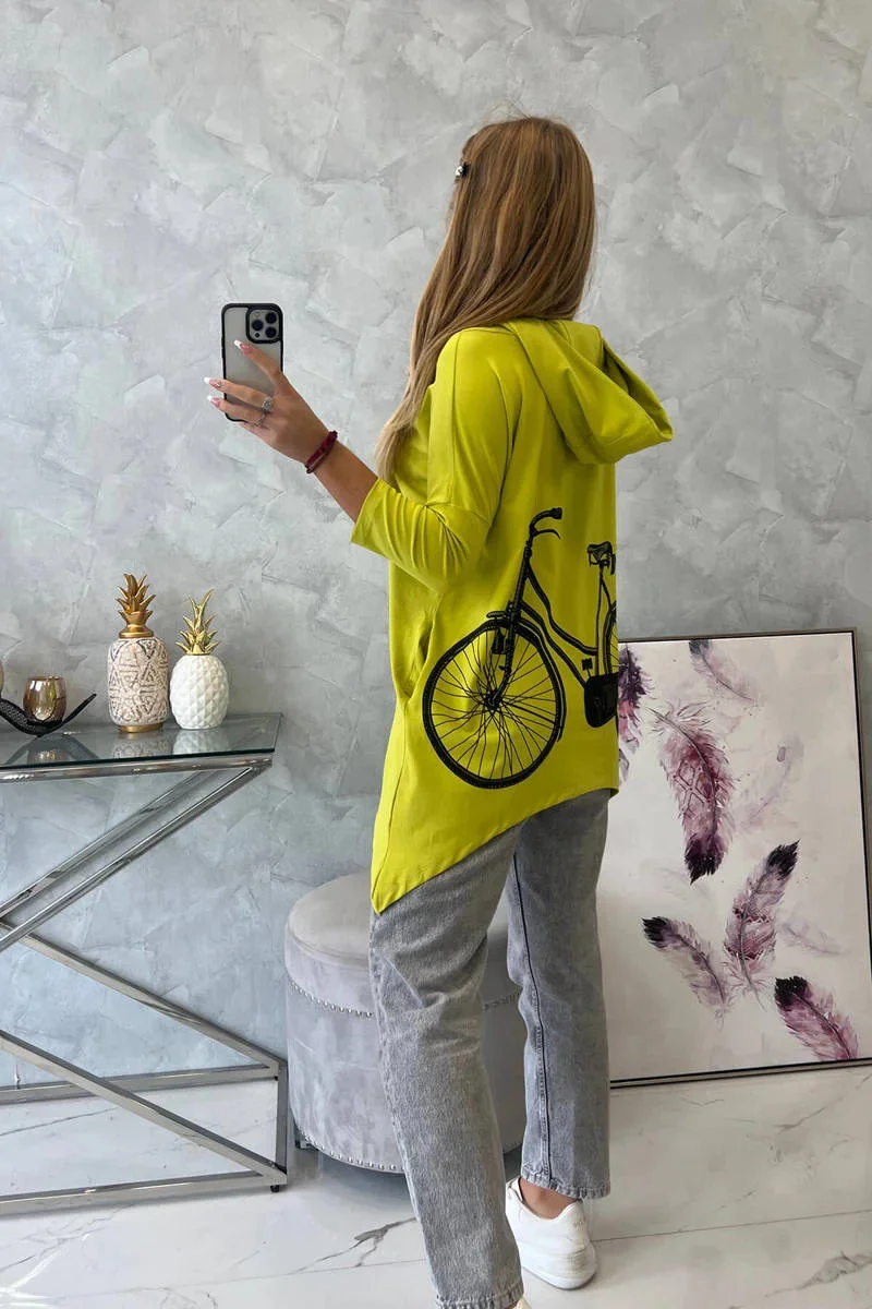 Představujeme vám módní mikinu. Mikina má na zádech potisk s motivem jízdního kola. Mikina s kapucí a kapsami. Mikina je vyrobena z vysoce kvalitního materiálu. Velikost je univerzální a vyhovuje dámským velikostem S, M, L.
