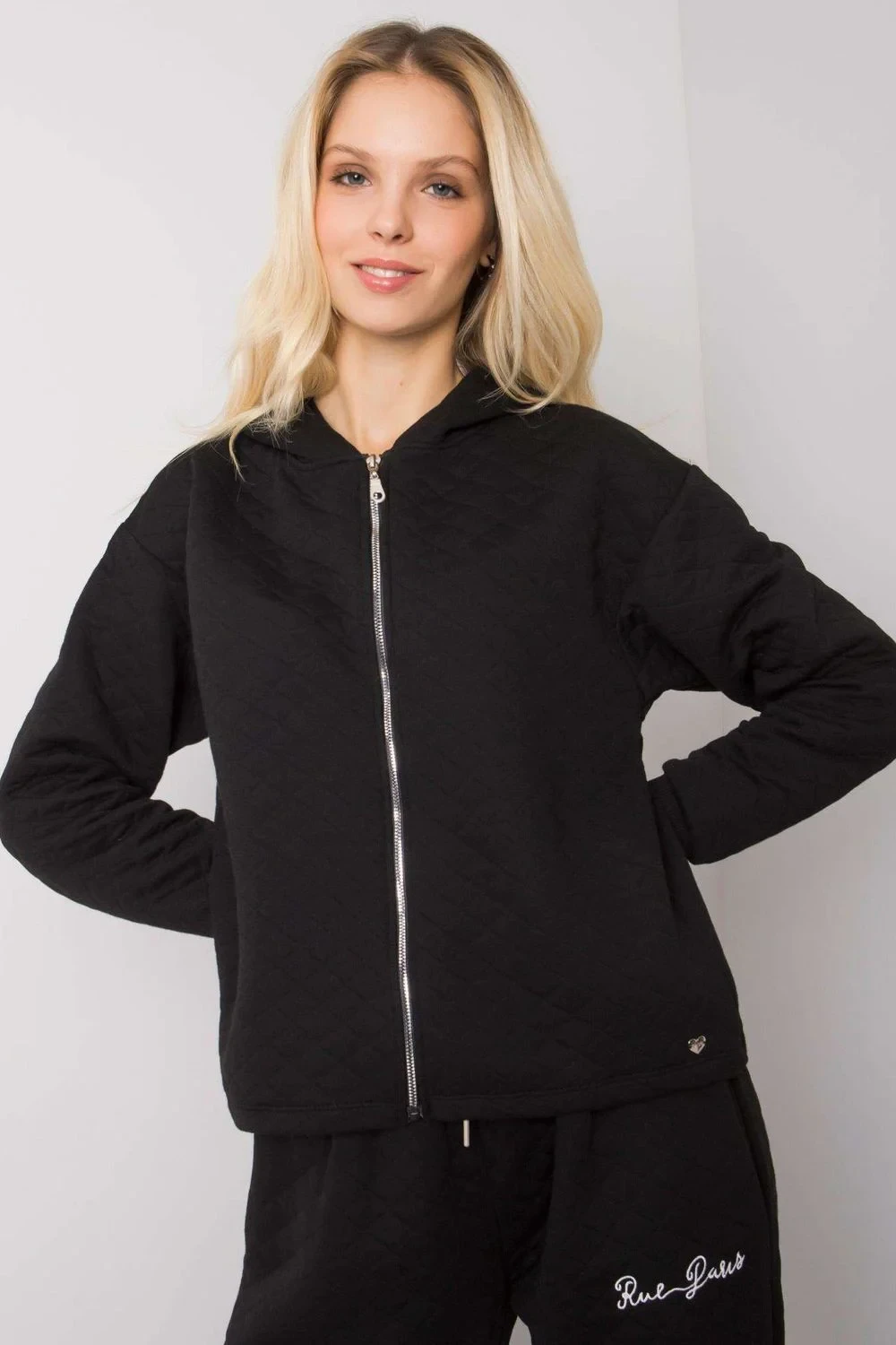 Prošívaná mikina na zip. Mikina s kapucí bez kapes.