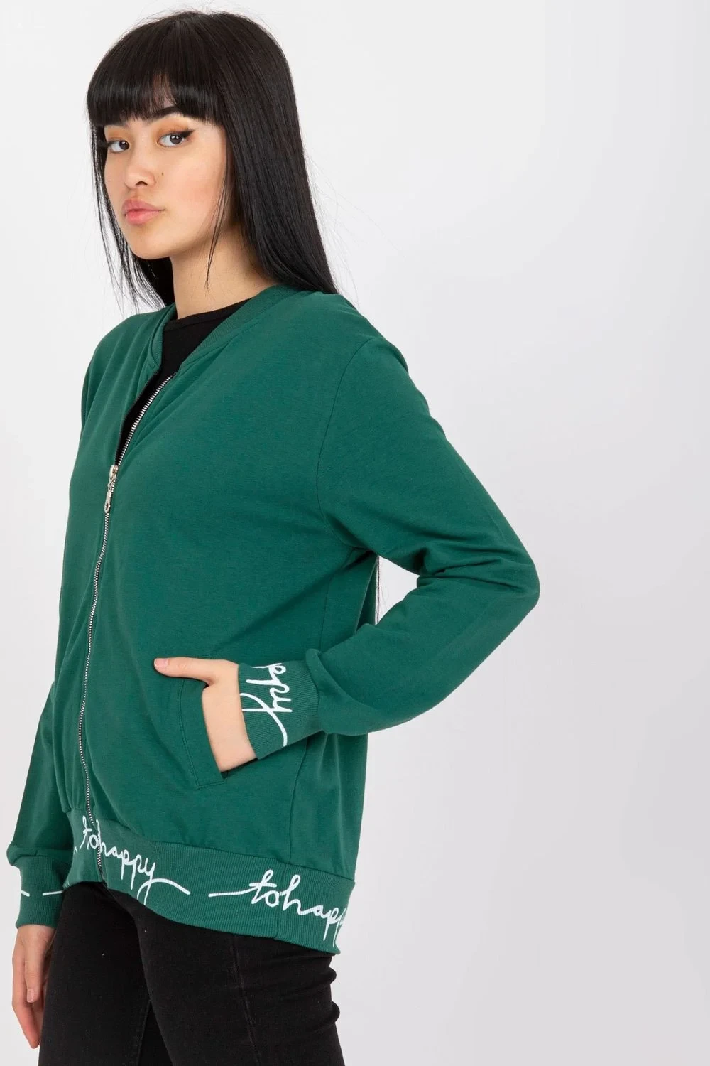 Dámská mikina s dlouhým rukávem a zipem. Kapsy na bocích. Opasek s kontrastním nápisem.