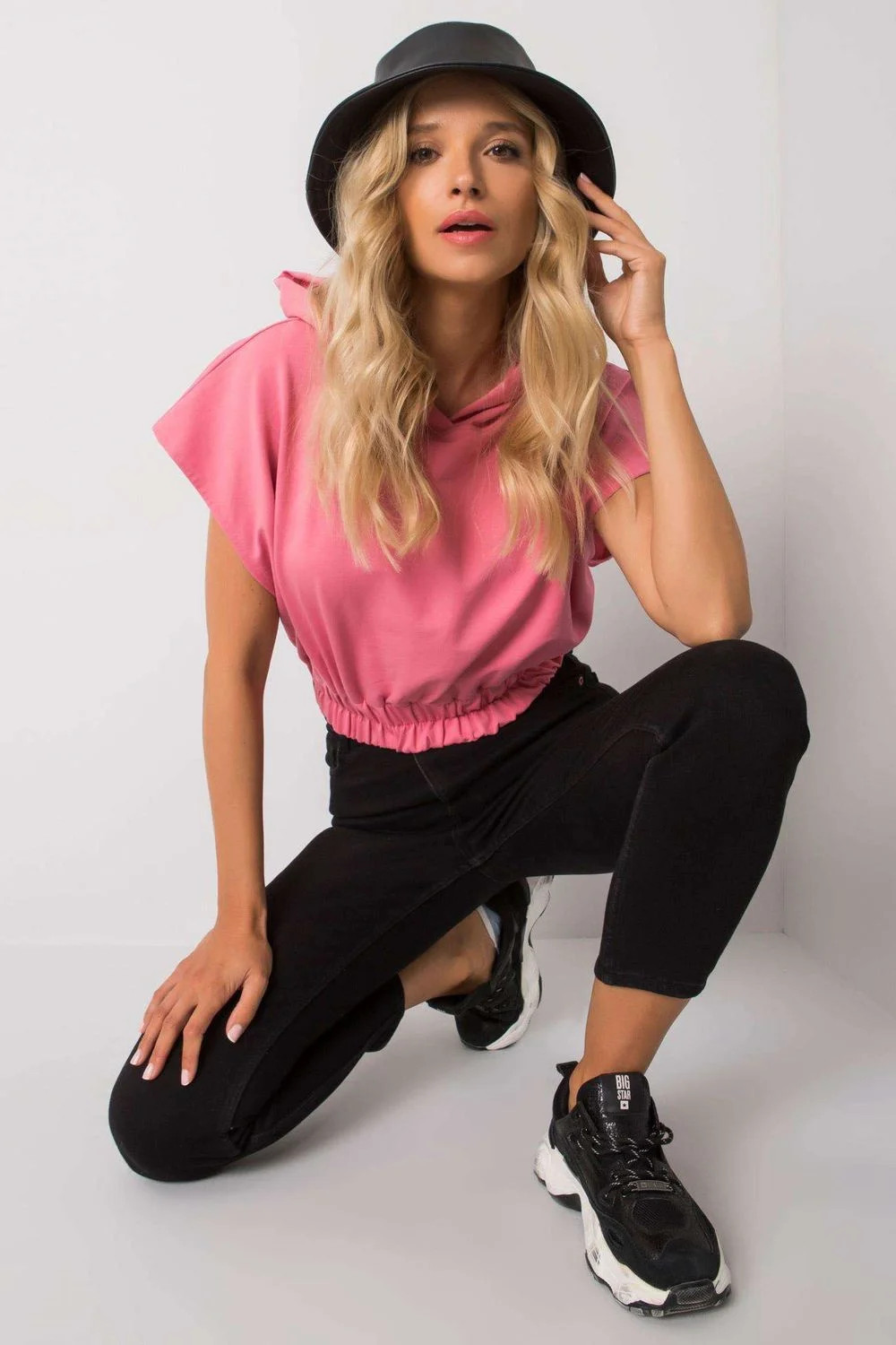 Dámská mikina volného střihu s krátkými rukávy a kapucí. Široká gumička ve spodní části.