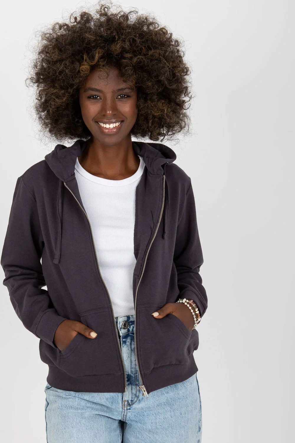 Dámská mikina na zip s dlouhými rukávy. Mikina s kapucí a kapsami na přední straně.