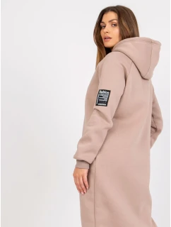 Dámská mikina s prodlouženým střihem, dlouhými rukávy a kapucí.