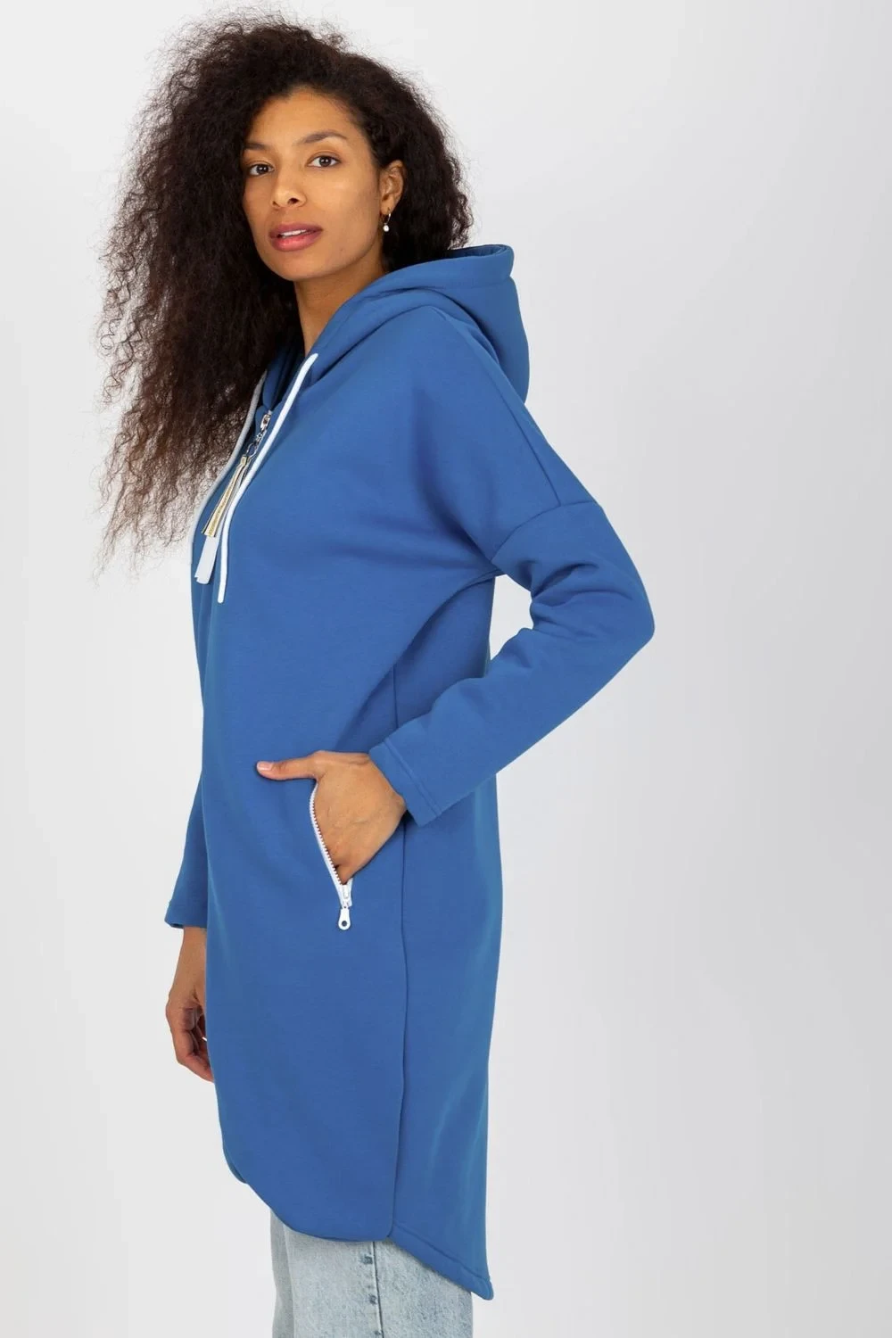 Dámská mikina s prodlouženým střihem, dlouhými rukávy a kapucí. Mikina se zapíná na zip a po stranách má kapsy na zip.