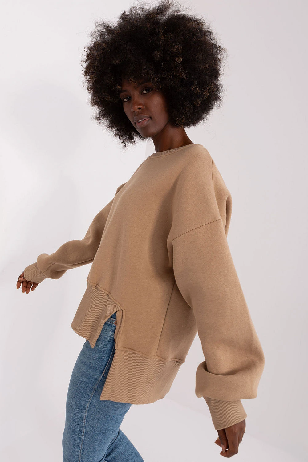 Tato dámská mikina je ideální volbou pro každodenní nošení. Díky svému elegantnímu designu se hodí k mnoha outfitům. Mikina má kulatý výstřih a dlouhé rukávy, takže se pohodlně nosí za různých povětrnostních podmínek. Je vyrobena ze vzdušné bavlny, takže je příjemná na kůži. Asymetrické zakončení spodní části dodává mikině originalitu a moderní nádech. Jedná se o pohodlný a stylový kousek oblečení, který se bude dobře hodit v mnoha situacích.