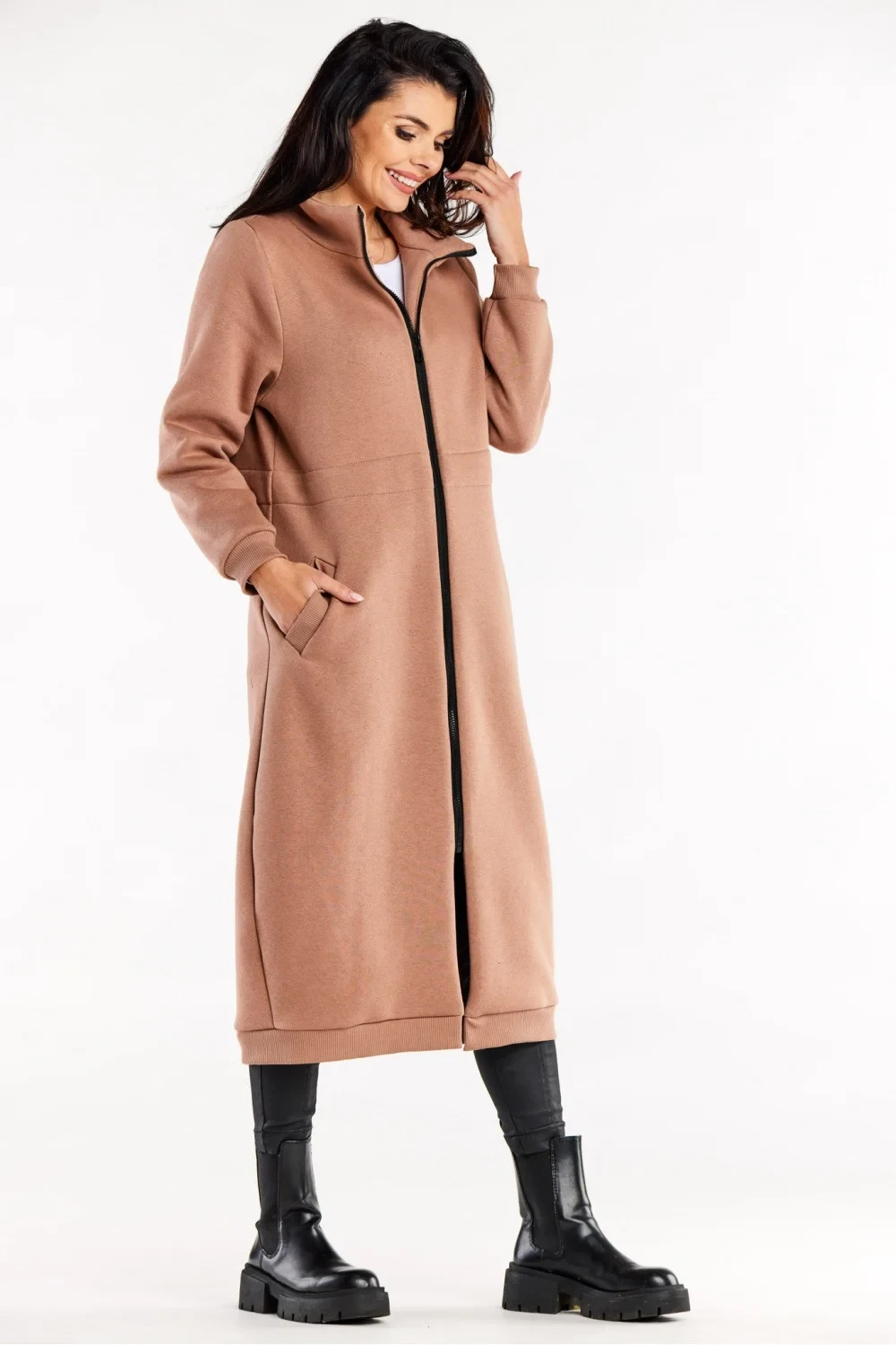 Dlouhá mikina na zip s dlouhými rukávy a vysokým límcem. Mikina má nakládané kapsy. Mikina má v pase tunýlek se stahovací šňůrkou na zádech.