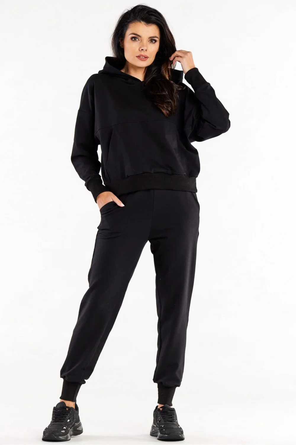 Volná mikina s dlouhými rukávy, kapucí a ozdobným prošíváním na přední straně. Velká klokaní kapsa na přední straně.