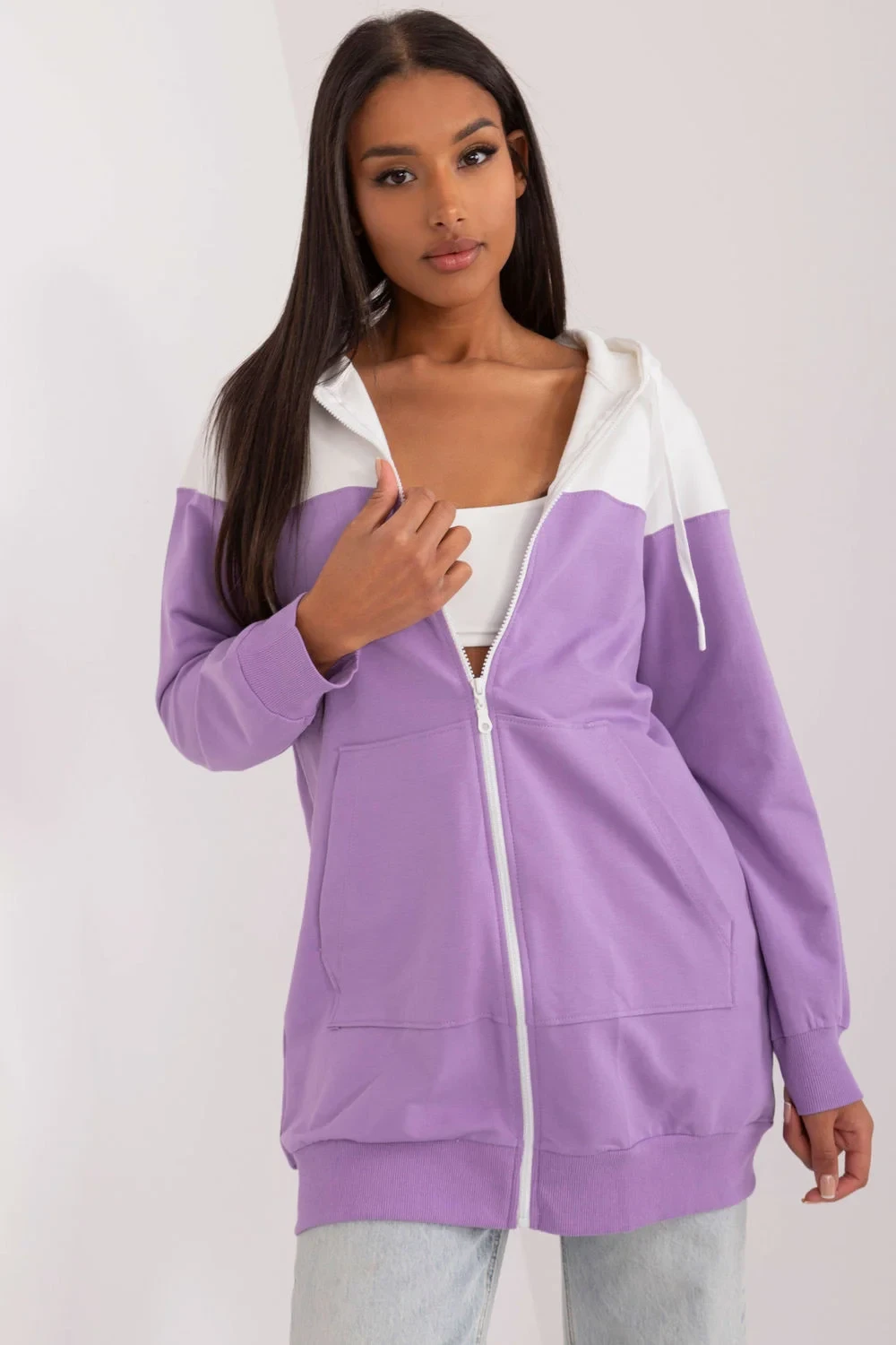 Dámská volná mikina ve sportovním stylu je vyrobena z hladkého materiálu v dvou barvách, co jí dodává moderní a dynamický vzhled. Hlavním materiálem je bavlna, která zajišťuje pohodlí a prodyšnost po celý den. Mikina je prodloužená, sahající až do poloviny stehen, co jí dodává unikátní charakter a umožňuje nošení jako vnější vrstvu i samostatný kus oblečení. Dlouhé rukávy a kapuce s šňůrkami poskytují ochranu před chladem a větrem. Zapínání na zip zaručuje snadné použití a kapsy na zapnutí přidávají praktičnost pro uložení drobných předmětů. Tato mikina je skvělou volbou pro aktivní ženy, které ocení pohodlí a styl na každý den.