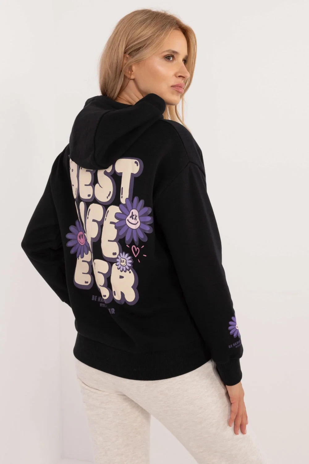 Tato dámská mikina je ideální pro každodenní nošení a je vyrobena ze směsi bavlny a polyesteru, která zajišťuje pohodlí a odolnost. Má potisk na zádech, malý potisk na přední straně a nápis na rukávu pro moderní a trendy vzhled. Má standardní délku, dlouhé rukávy a praktickou kapuci, která je ideální pro chladnější dny. Kapsy s průvlekem nabízejí další funkčnost a zateplený interiér vás udrží v teple a pohodlí. Je to ideální volba pro každodenní vycházky, kdy chcete spojit styl a pohodlí.