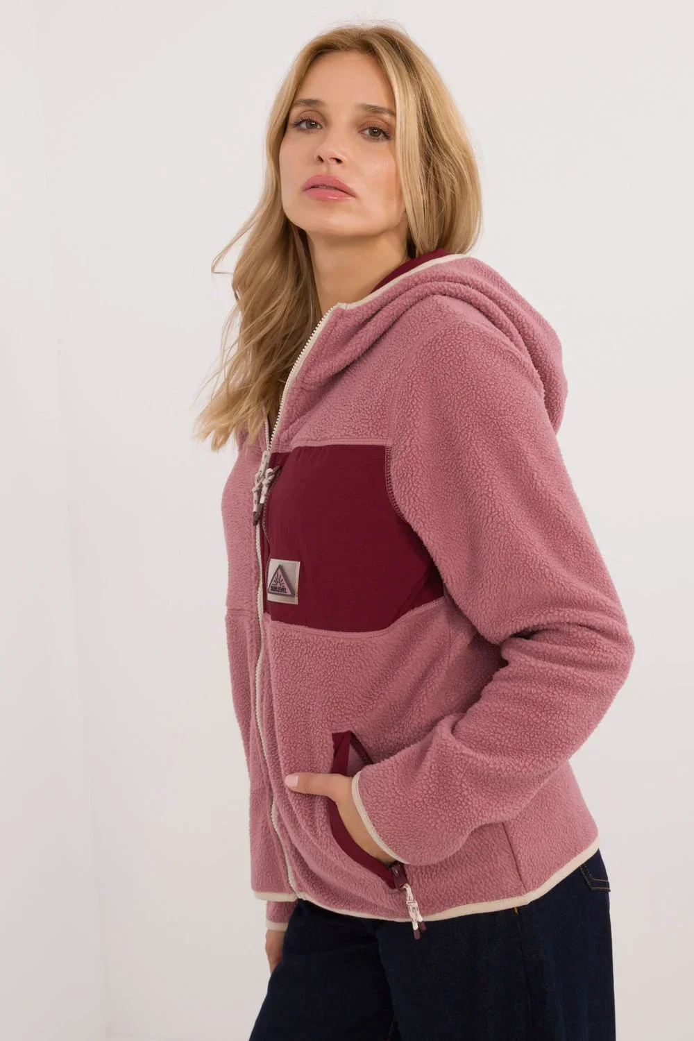 Dámská mikina v ležérním stylu, vyrobená z polyesteru, ideální pro každodenní vycházky. Má jednobarevný vzor, který jí dodává jednoduchost a univerzálnost. Má standardní délku a dlouhé rukávy pro pohodlí a teplo. Je vybavena praktickou kapucí a zapínáním na zip pro větší funkčnost. Dvě nakládané kapsy na bocích a kapsa na zip na hrudi poskytují prostor pro drobnosti a podtrhují sportovní a zároveň stylový charakter mikiny. Je ideální volbou pro každodenní nošení, kombinuje pohodlí s módním vzhledem.