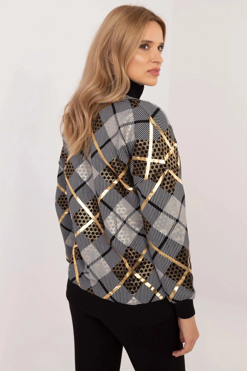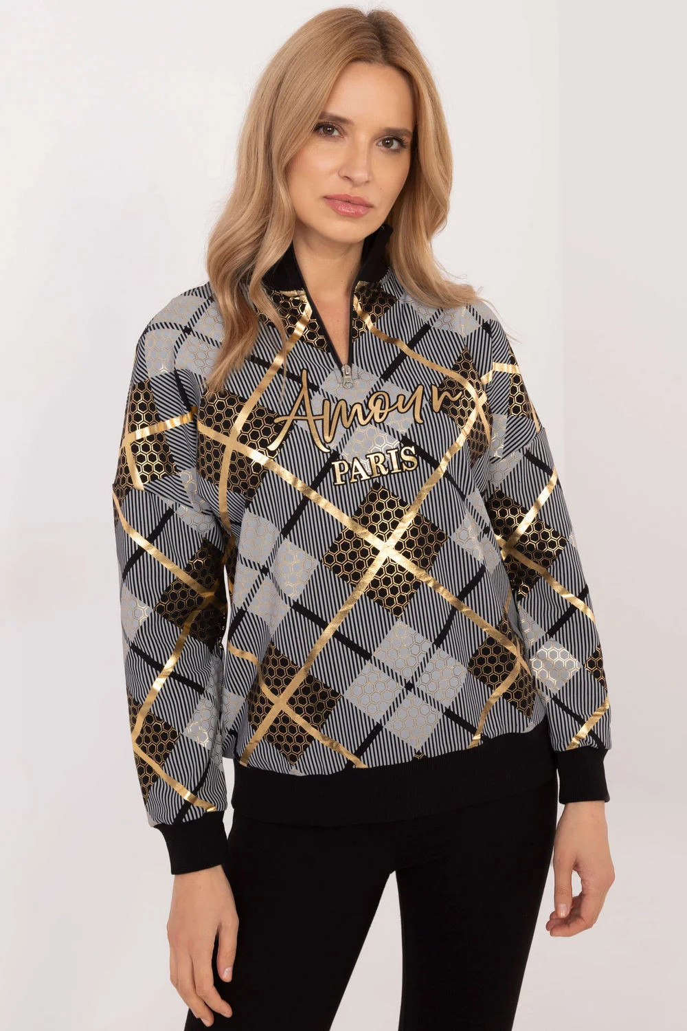 Stylový dámský mikina s casual charakterem je ideální kombinací pohodlí a moderního designu. Dominantní vzor v káře jí dodává zvláštní kouzlo, díky čemuž se skvěle hodí jak na každý den, tak i do volnějších stylizací. Mikina je vyrobena z měkké bavlny s přídavkem elastanu, díky čemuž je příjemná na dotek, prodyšná a elastická, což zaručuje plný komfort nošení. Standardní délka a dlouhý rukáv ji dělají univerzálním kouskem šatníku. Model je vybaven praktickým stojáčkem se zipem, který nejen zdůrazňuje sportovní charakter mikiny, ale také chrání před chladem v chladnějších dnech. Je to skvělá volba pro ženy, které oceňují styl a pohodlí ve svých každodenních stylizacích.