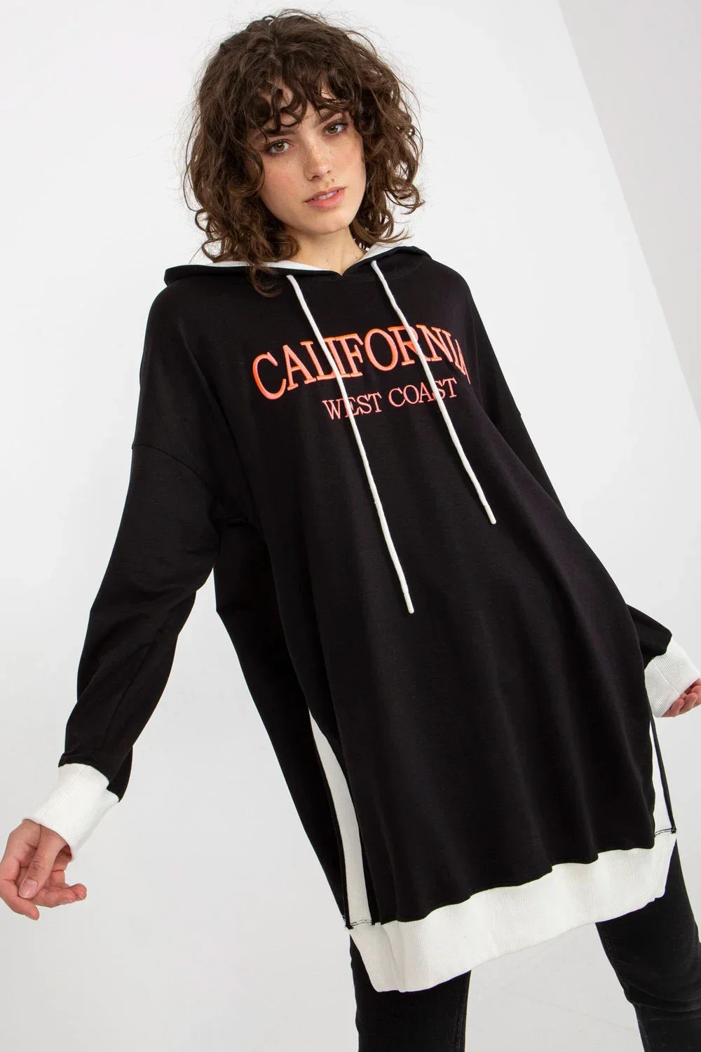 Dlouhý dámský svetr v casual stylu je ideální volbou pro ženy, které ocení pohodlí a jednoduchý, moderní design. Model je charakterizován hladkým vzorem, který dodává univerzálnost, díky čemuž svetr ladí s mnoha stylizacemi. Vyrobený z vysoce kvalitní směsi bavlny, polyesteru a elastanu, poskytuje pohodlí nošení a odolnost materiálu. Prodloužený střih s rozparky po bocích dodává lehkost a módní vzhled. Svetr je vybaven praktickou kapucí s šňůrkami, umožňujícími individuální přizpůsobení. Na přední straně je stylová nášivka s nápisem, která představuje decentní akcent. Absence zapínání zdůrazňuje uvolněný, volný charakter a dlouhé rukávy zase zajišťují, že svetr je ideální volbou i pro chladnější dny. Ideální na každý den, k džínám, legínám nebo pohodlným kalhotám.