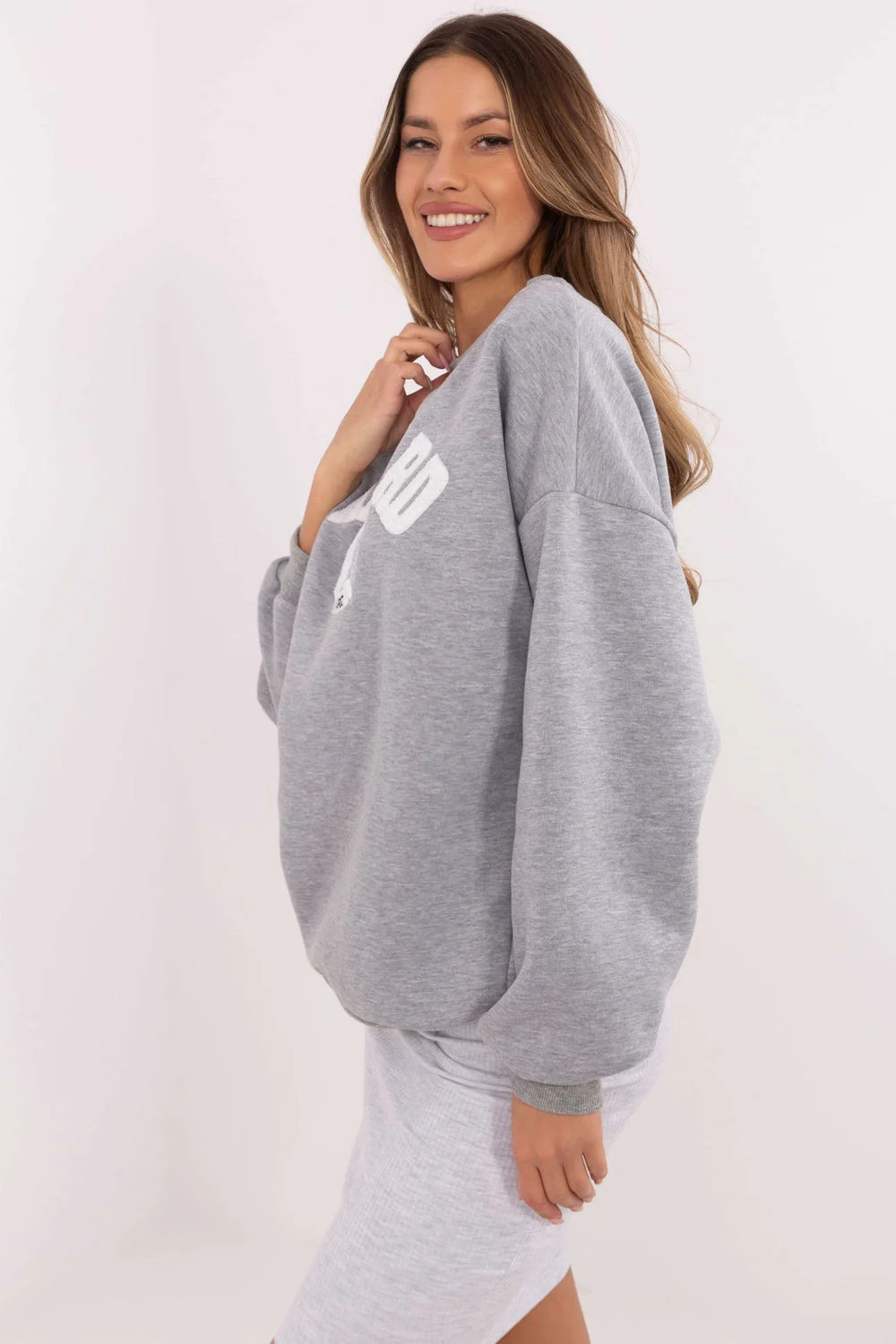 Dámská mikina ve stylu casual je ideální volbou pro každodenní outfit, kombinuje pohodlí s trendy vzhledem. Vyrobená z vysoce kvalitní směsi bavlny a polyesteru, poskytuje pohodlí a odolnost. Mikina má standardní délku a klasický střih s dlouhými rukávy, co ji činí univerzálním kouskem do šatníku. Kulatý výstřih dodává subtilní eleganci a absenci zipu zdůrazňuje minimalistický styl. Na přední straně jsou výrazné nápisy a efektní nášivky, které přitahují pozornost a dodávají mikině unikátní charakter. Další výhodou je její zateplení, díky které bude mikina skvělým partnerem pro chladnější dny, poskytující teplé a pohodlí. Tento model je ideální volbou pro ženy, které ocení pohodlí a moderní design.