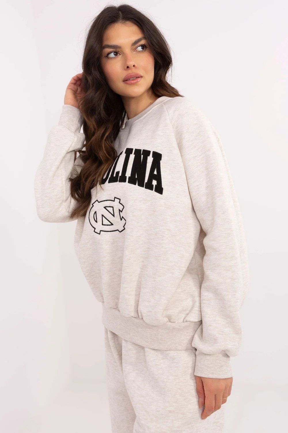 Dámská mikina ve stylu casual je pohodlnou a moderní volbou na každý den. Vyrobena z vysoce kvalitní bavlny, poskytuje měkkost, trvanlivost a pohodlí po celý den. Model s standardní délkou a dlouhými rukávy se skvěle hodí na každou roční dobu. Mikina má kulatý výstřih a chybí zapínání, co zdůrazňuje její jednoduchý a univerzální charakter. Další akcenty, jako je nášivka na přední straně, vyšívaný motiv a velký nápis, jí dodávají výrazný a moderní styl. Zateplení z ní činí také skvělou volbu na chladnější dny, zajišťující teplotu a pohodlí. Je to ideální návrh k nošení s džíny, legíny nebo teplákovými kalhotami, které jsou stylovým prvkem každodenního šatníku.