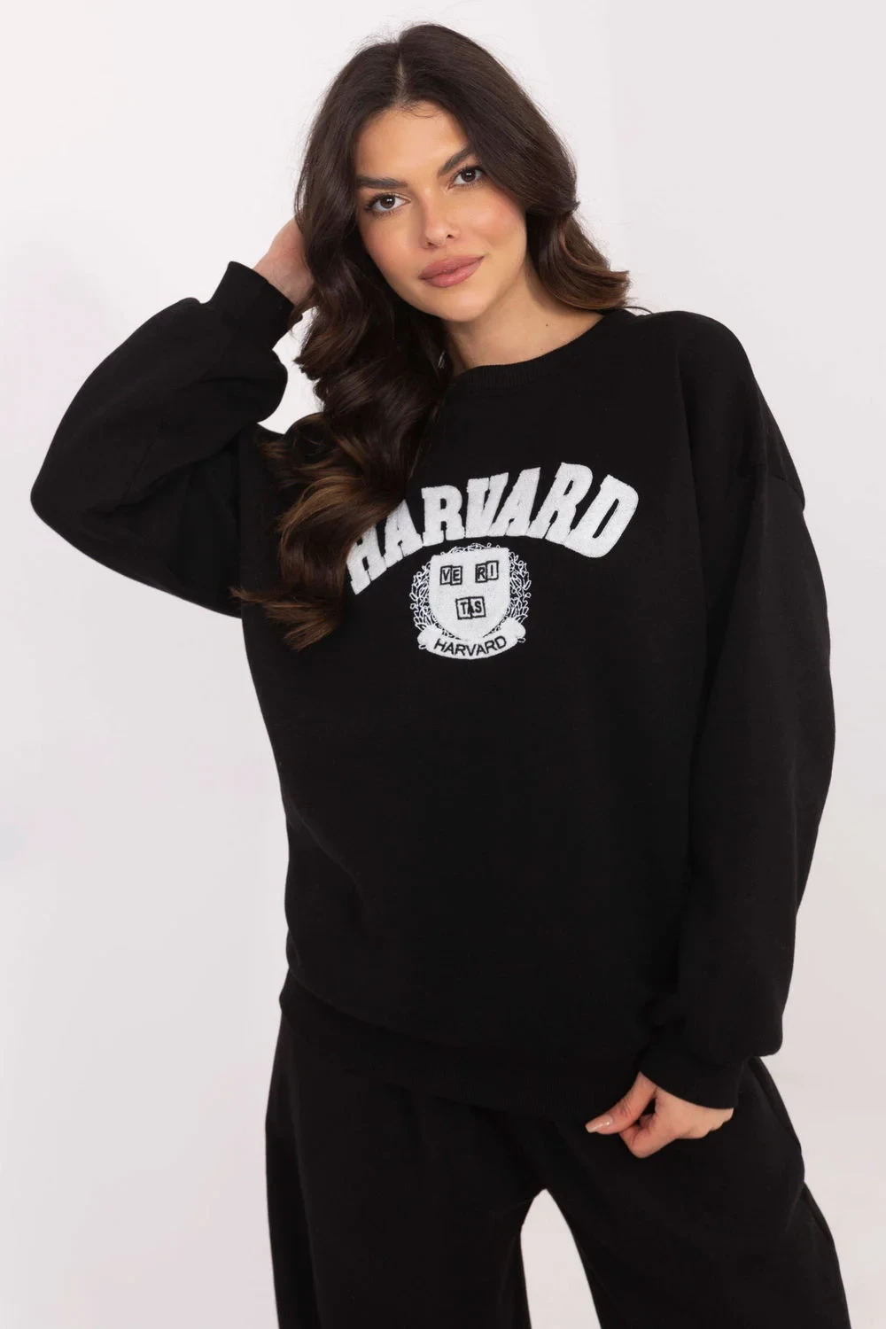 Dámský casual svetr je ideální volbou pro každodenní outfit, spojuje pohodlí s módním vzhledem. Vyrobený z vysoké kvality směsi bavlny a polyesteru, poskytuje pohodlí nošení a odolnost. Svetr má standardní délku a klasický střih s dlouhými rukávy, co ho činí univerzálním kouskem šatníku. Kulatý výstřih dodává subtilní eleganci a absence zapínání zdůrazňuje minimalistický styl. Na přední straně jsou výrazné nápisy a efektní nášivky, které přitahují pozornost a dodávají svetru jedinečný charakter. Další výhodou je prošívaní, díky kterému se svetr skvěle hodí do chladných dní, poskytující teplo a pohodlí. Tento model je ideální volbou pro ženy, které si cení pohodlí a moderního designu.