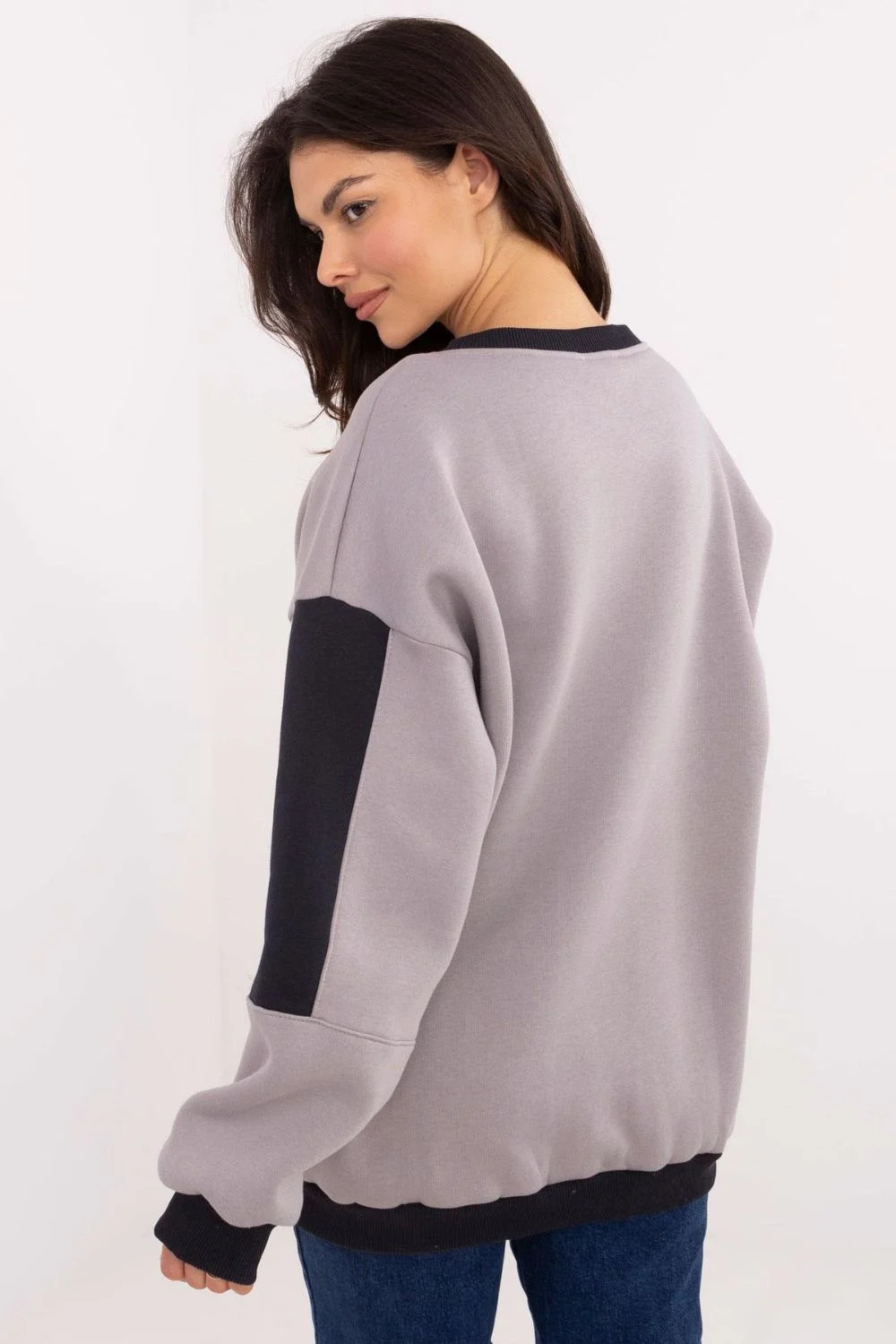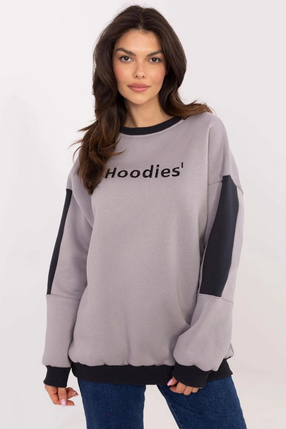 Casualní dámská mikina s klasickým, univerzálním střihem, ideální na chladnější dny. Vyrobená z kombinace bavlny a polyesteru, zaručuje pohodlí nošení, měkkost a odolnost. Model standardní délky s dlouhými rukávy ozdobenými kontrastními vložkami, které dodávají celku moderní charakter. Mikina má kulatý výstřih a absence zapínání zdůrazňuje její pohodlný, volný styl. Další výhodou je zateplení, které poskytuje teplo v chladnějších dnech. Na přední straně je vyšívaný prvek ve formě nápisu, který jí dodává výjimečný, módní akcent. Ideální na každý den, ke kalhotám nebo legínám.