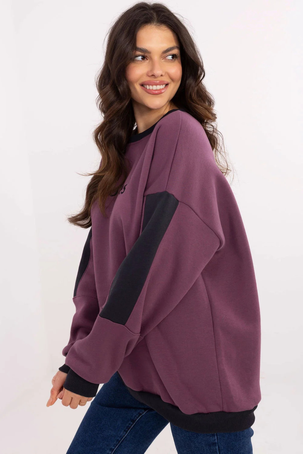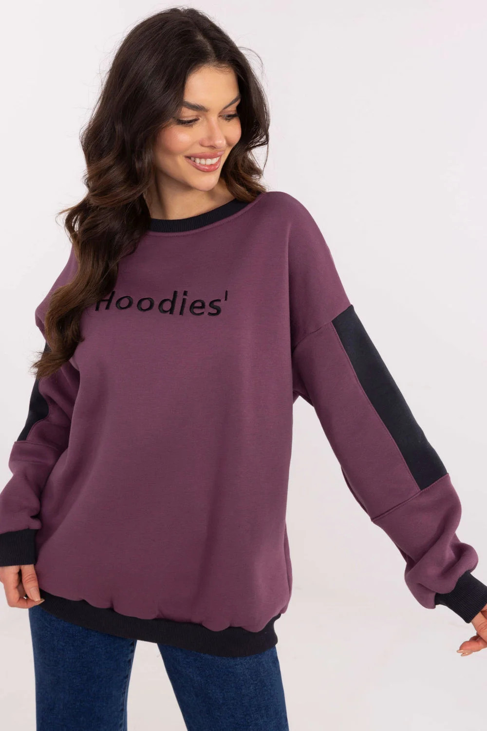 Casualní dámská mikina s klasickým a univerzálním střihem, ideální na chladnější dny. Vyrobená z kombinace bavlny a polyesteru, zaručuje pohodlí nošení, měkkost a odolnost. Model standardní délky s dlouhými rukávy zdobenými kontrastními vložkami, které dodávají celku moderní charakter. Mikina má kulatý výstřih a absence zapínání zdůrazňuje její pohodlný, volný styl. Další výhodou je zateplení, které poskytuje teplo v chladnějších dnech. Na přední straně je vyšívaný ozdobný nápis, který dodává mikině výjimečný, módní akcent. Ideální na každodenní nošení, k džínám nebo legínám.
