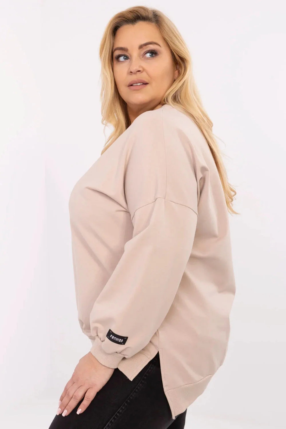 Dámská mikina plus size ve stylu casual je skvělou volbou pro každodenní nošení pro ženy, které ocení pohodlí a módní minimalismus. Vyrobena z měkké, příjemné na dotek bavlny s přídavkem elastanu, poskytuje pohodlné nošení a volnost pohybu. Model s standardní délkou, s klasickým kulatým výstřihem a dlouhým rukávem. Hladký materiál jí dodává univerzální charakter, který lze snadno sladit s různými styly, od džínů po legíny. Mikina nemá zapínání, což z ní dělá mimořádně pohodlnou na nasazování. Další akcenty v podobě nášivky na zádech a rukávu jemně zdůrazňují její moderní, casualový styl. Ideální na každodenní nošení do práce, pro procházky nebo relaxaci doma.