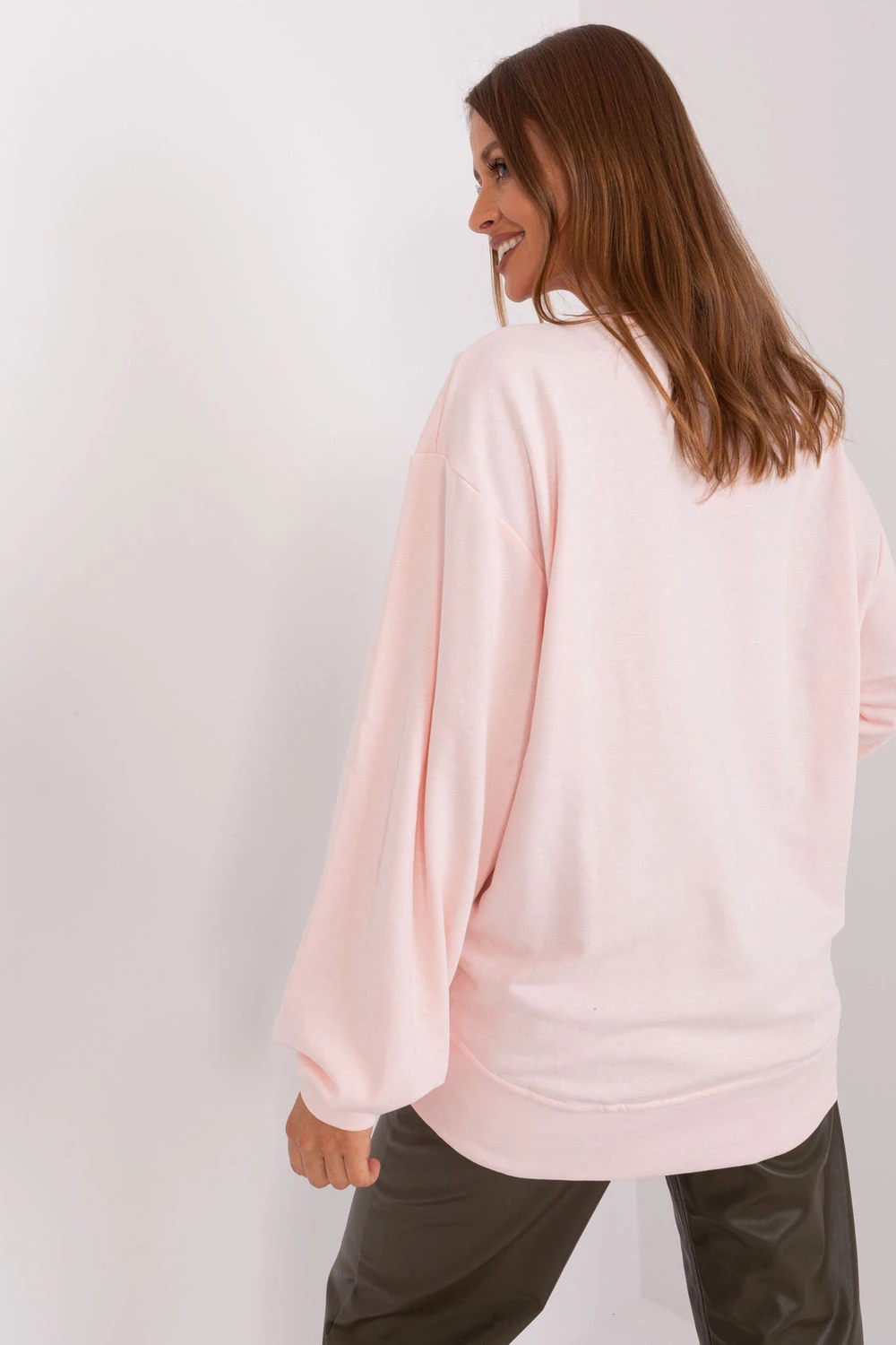 Tato dámská mikina v casual stylu je ideální kombinací pohodlí a módního designu. Vyrobená z měkké směsi bavlny a polyesteru poskytuje pohodlné nošení a odolnost. Hladká struktura materiálu dělá mikinu univerzální a snadno stylizovatelnou na každý den. Volný, oversized střih zaručuje volnost pohybu a skvěle padne na postavě, dodávající stylizaci lehkost a moderní charakter. Standardní délka a klasický, kulatý výstřih dělají mikinu vhodnou jak k džínům, tak k teplákovým kalhotám nebo legínám. Na přední straně je jemné, ozdobné prošití, které dodává celku výjimečný akcent a odlišuje mikinu od klasických modelů. Je to skvělá volba na každodenní vycházky, relaxaci doma nebo nezávazná setkání, kombinující módní vzhled s maximálním komfortem.