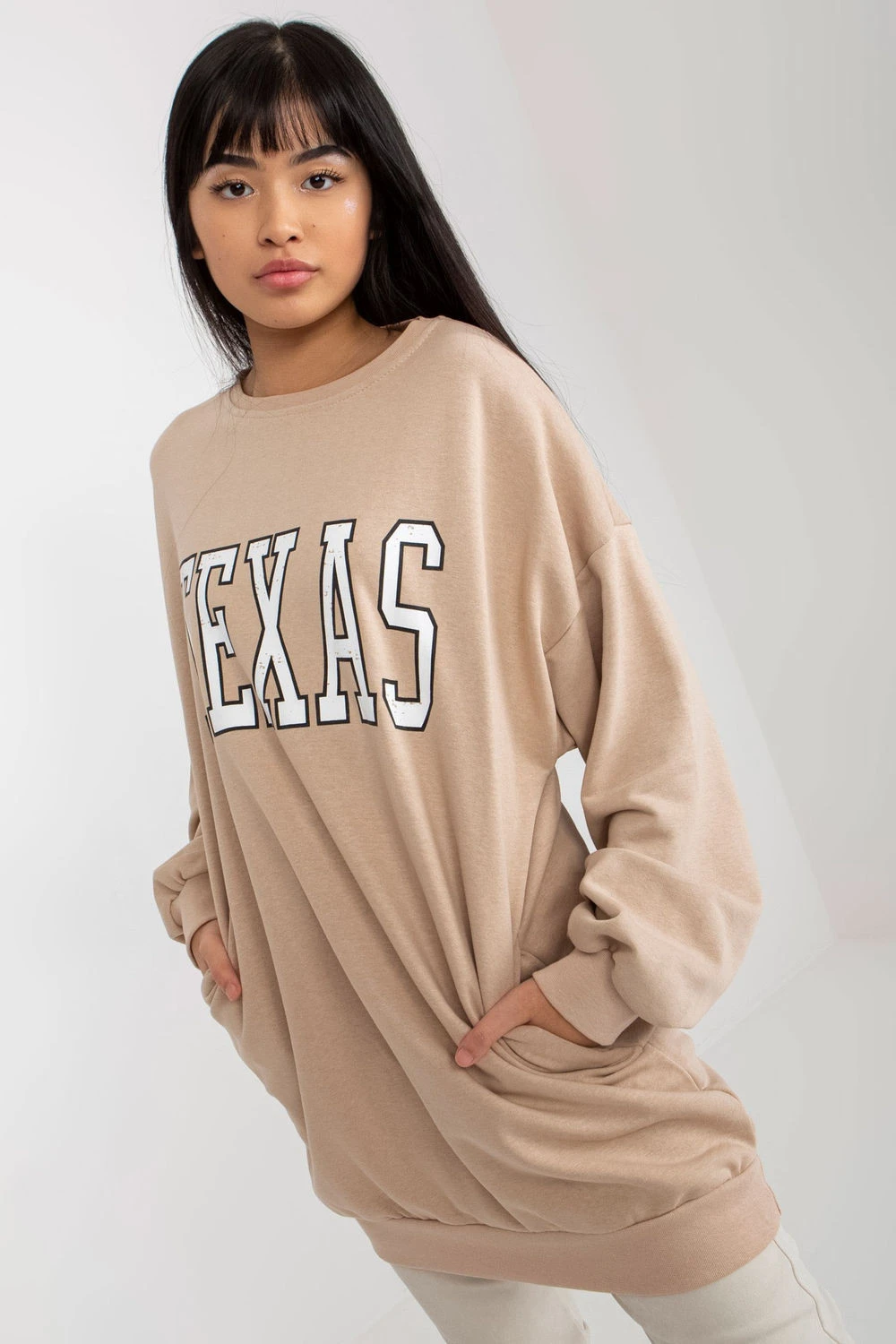 Dlouhá dámská mikina ve stylu casual je ideální volbou na každý den pohodlná, praktická a stylová. Vyrobená z měkké směsi bavlny a polyesteru poskytuje pohodlí a odolnost i při častém nošení. Model s delším střihem se skvěle hodí na chladnější dny, poskytuje teplo a volnost pohybu. Na přední straně je módní nápis, který dává mikině moderní charakter a oživuje její minimalistický vzhled. Klasický, kulatý výstřih a dlouhé rukávy dělají mikinu univerzální a hodí se k mnoha stylizacím. Zakončení lemy dodává celku sportovní nádech a pomáhá udržet střih, a praktické kapsy zasunuté do bočních švů zvyšují funkčnost, aniž by narušovaly estetický vzhled. Tato mikina je ideální na každodenní nošení, skvěle se hodí k legínám, džínům nebo teplákovým kalhotám.