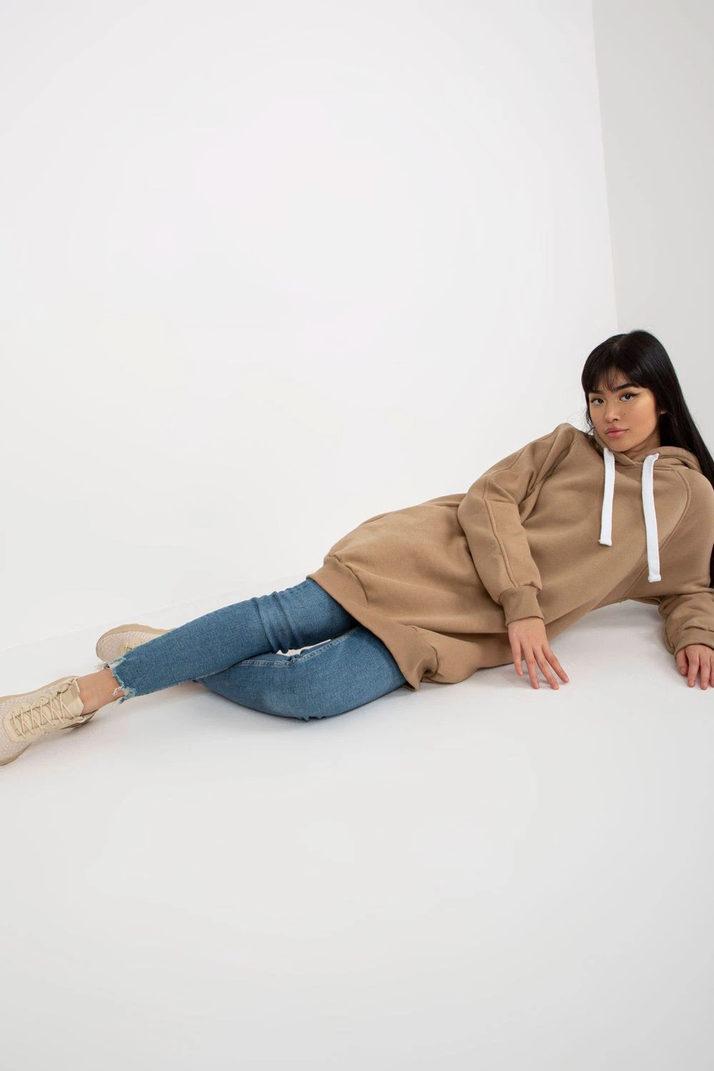 Tento dlouhý dámský svetr je ideální volbou na chladnější dny, kombinuje pohodlí, funkčnost a módní, ležérní styl. Vyrobený z měkké směsi bavlny a polyesteru, poskytuje příjemné teplo díky tepelně izolovanému vnitřku, zároveň je trvanlivý a pohodlný k nošení. Model s hladkým vzorem a jednoduchým střihem se hodí jako univerzální základ denního oblékání. Dlouhý rukáv, prostorná kapuce s šňůrkami k nastavení a boční kapsy ukryté ve švech zvyšují funkčnost a pohodlí nošení. Delší střih skvěle chrání před chladem a minimalistický design umožňuje snadné sladění s různými kousky oblečení od legín po džíny. Je to praktický a stylový návrh pro ženy, které si cení pohodlí každý den.
