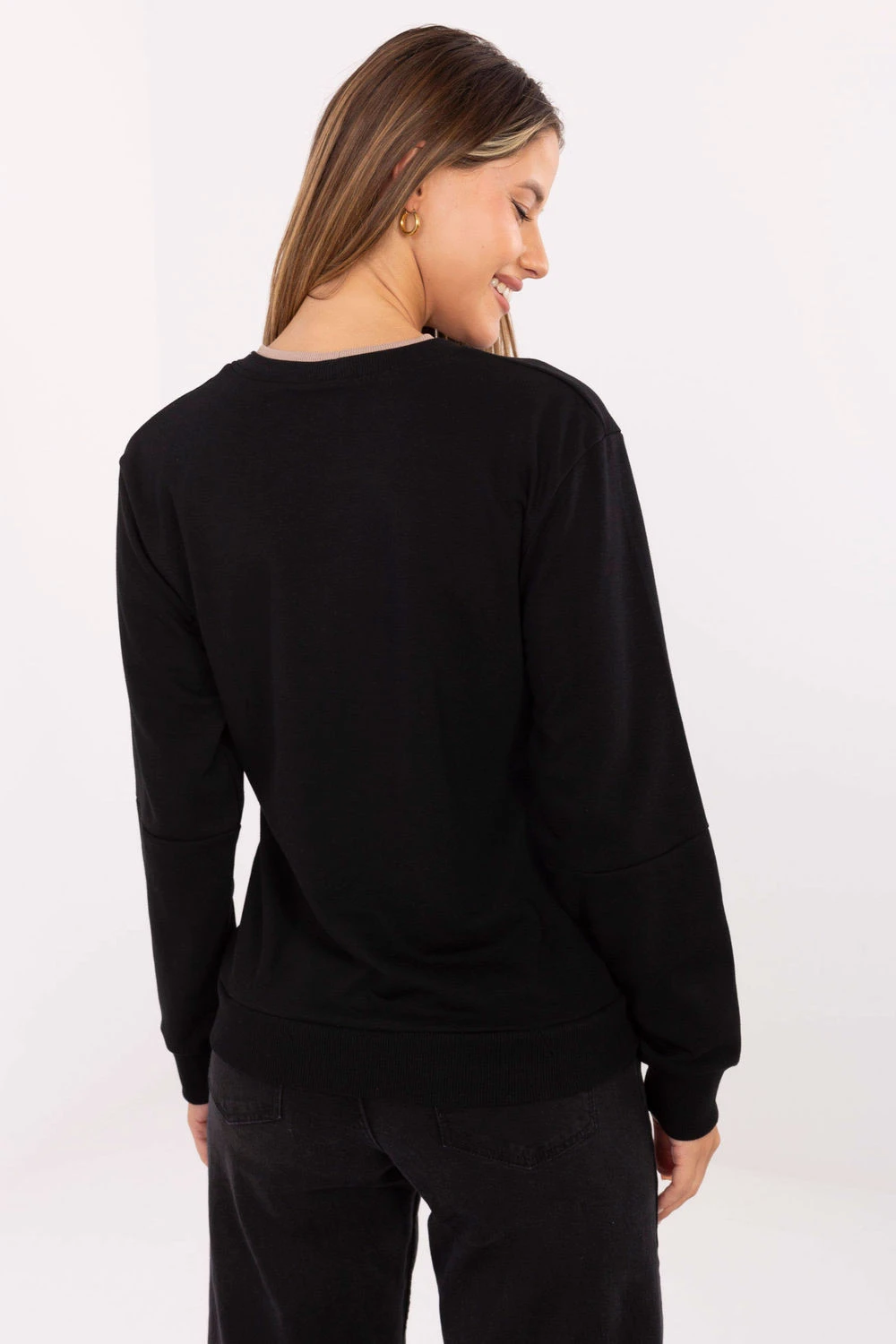 Casual dámský svetr vyrobený z měkké směsi bavlny a polyesteru, kombinující pohodlí s každodenním stylem. Klasický kulatý výstřih a dlouhé rukávy zajistí pohodlí při nošení, a standardní délka dělá svetr ideálním doplňkem k různým stylizacím. Model s hladkou strukturou zdobí jemné nášivky vpředu a vyšívané logo na pravém rukávu, které dodávají celku moderní a stylový charakter. Skvělý na každodenní, casual příležitosti.