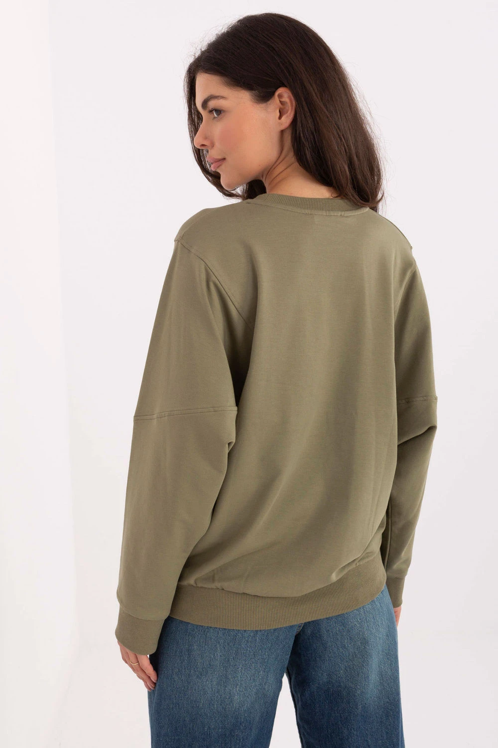 Dámská volná blůza s dlouhým rukávem je pohodlným a univerzálním návrhem na každý den. Vyrobená z měkké bavlny s přídavkem elastanu zaručuje pohodlí nošení a ideální přizpůsobení postavě. Standardní délka a klasický, kulatý výstřih dělají z blůzy skvělý doplněk jak k kalhotám, tak ke sukním v každodenních stylizacích. Model s hladkým povrchem, obohacený o decentní nášivku na přední straně, se vyznačuje minimalistickým designem, díky čemuž se hodí k mnoha příležitostem. Bez zapínání zajistí volnost a jednoduchost použití.