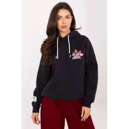 Dámská mikina v casual stylu, ideální na každý den. Vyrobená z směsi bavlny a polyesteru, poskytuje pohodlí a příjemné teplo. Model se standardní délkou a dlouhými rukávy má kapuci s šňůrkami k regulaci. Na pravém rukávu je charakteristická nášivka a na přední a zadní straně potisk, menší vpředu a větší vzadu. Praktické kapsy vsunuté do bočních švů umožňují pohodlně schovat drobnosti.