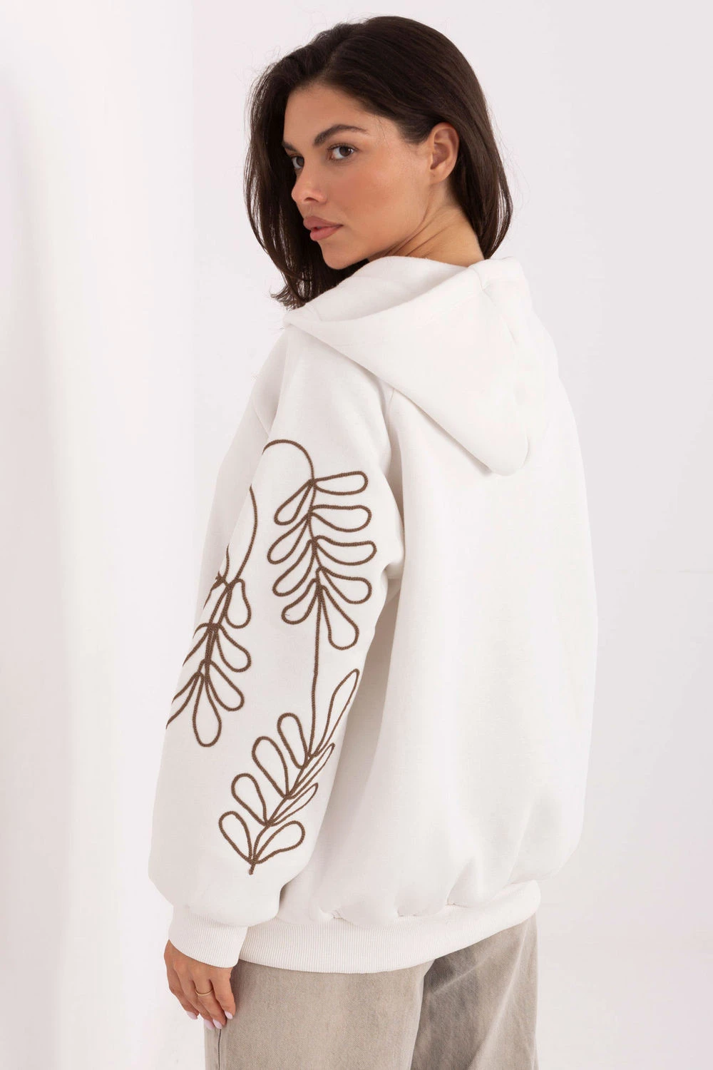 Dámská mikina s kapucí v casual stylu, ideální na každodenní příležitosti. Vyrobená z vysoké kvality bavlny s přídavkem elastanu, poskytuje pohodlí a pružnost. Model se standardní délkou a dlouhými rukávy, na kterých jsou dekorativní vyšívané detaily. Mikina má kapuci, zapíná se na zip a praktické kapsy vpředu umožňují pohodlně schovat drobnosti. Lehce tepelně izolovaná, skvěle se hodí do casual stylizací.