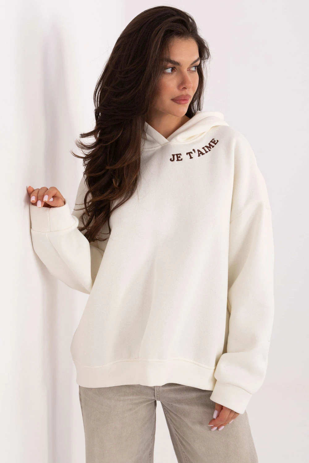 Elegantní a pohodlná dámská mikina s ležérním charakterem, ideální na každý den. Vyrobená z měkké směsi bavlny a polyesteru, poskytuje pohodlí nošení a příjemné zahřátí v chladnějších dnech. Model standardní délky s dlouhým rukávem a praktickou kapucí. Přední část zdobí decentní vyšívání, které mikině dodává jemný, elegantní akcent. Hladký vzor dělá mikinu skvěle sladitelnou s různými ležérními styly. Skvělá volba pro ženy, které ocení pohodlí spojené se stylem.