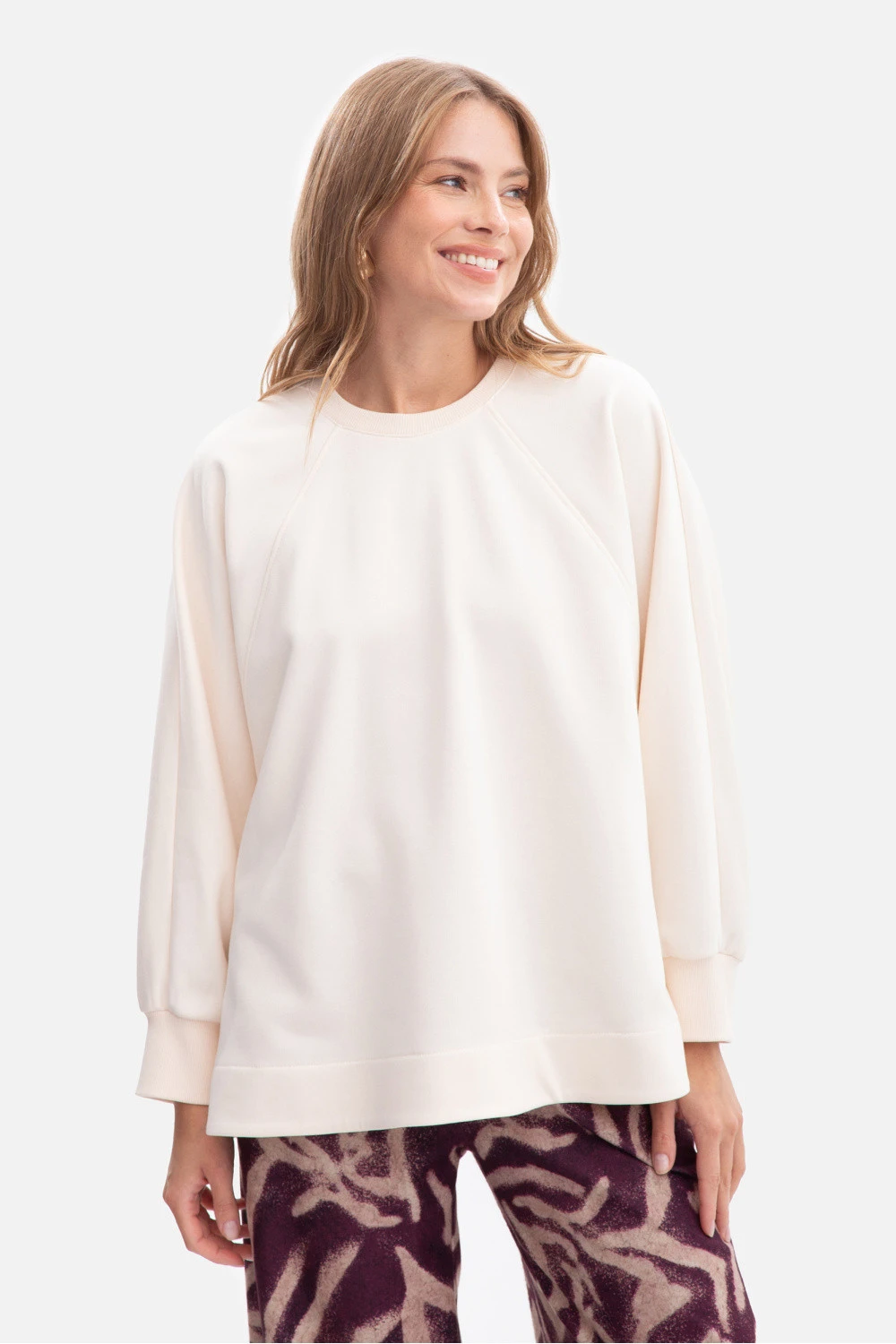 Svetřík dámský oversize vyrobený z vysoce kvalitní hladké úpletoviny s gramáží 280 g s jemným spodním materiálem, který zajišťuje pohodlí, měkkost a odolnost. Model s hlavovým výstřihem, bez kapes a podšívek, v minimalistickém stylu. Klasický kulatý výstřih u krku a dlouhé raglánové rukávy s manžetami dodávají svetru sportovně-casualový charakter. Rozparky po stranách dole dodávají lehkost, zajišťují volnost pohybu a zajímavý stylistický detail. Střih volný, oversize, s jednoduchým a uvolněným střihem, který skvěle zakrývá drobné nedokonalosti a nabízí mnoho možností stylizace. Délka po boky dělá svetříku vhodným jak k džínám, tak ke legínám, zaručujíc pohodlí na každý den. Navržený a ušitý v Polsku z úpletoviny vyrobené v Lodži je spojení kvality, funkcionality a nadčasového designu. Lem: 95% bavlna, 5% elastan.