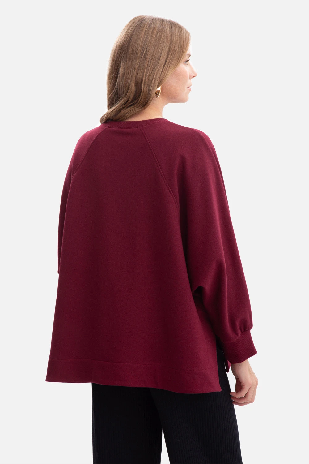 Dámská oversized mikina vyrobena z vysoce kvalitní hladké pletené látky o hmotnosti 280 g s fleecovou podšívkou, která poskytuje pohodlí, měkkost a trvanlivost. Model nasazovaný přes hlavu, bez kapes a podšívky, v minimalistickém stylu. Klasický kulatý výstřih kolem krku a dlouhé raglánové rukávy s manžetami dodávají mikině sportovně-ležérní charakter. Rozpory po stranách dole přidávají lehkost, zajišťují volnost pohybů a zajímavý stylistický detail. Volný, oversized střih, s jednoduchým a volným střihem, který skvěle maskuje drobné nedokonalosti a nabízí mnoho možností stylizace. Délka po boky dělá mikinu vhodnou jak k džínám, tak k legínám, zaručující pohodlí každý den. Navržena a ušita v Polsku z pleteniny vyrobené v Lodži je spojením kvality, funkčnosti a nadčasového designu. Lem: 95% bavlna, 5% elastan.