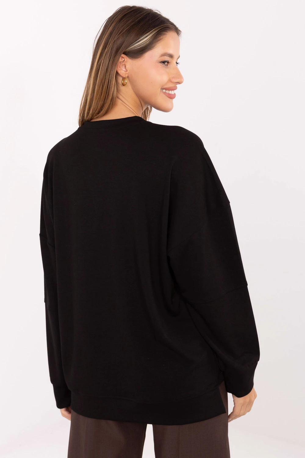Měkká a pohodlná dámská mikina vyrobená z vysoce kvalitního materiálu typu máslová tkanina, jemná a mimořádně měkká na dotek. Model s hladkým vzorem a klasickým kulatým výstřihem se skvěle hodí do každodenních, neformálních stylizací. Mikina má standardní délku, dlouhý rukáv a není zapínána, co zdůrazňuje její jednoduchý a univerzální charakter. Vyrobená z kombinace viskózy a elastanu poskytuje pohodlí, měkkost a lehkost nošení po celý den. Je to ideální volba pro ženy, které ocení pohodlí, jednoduchost a styl každý den.