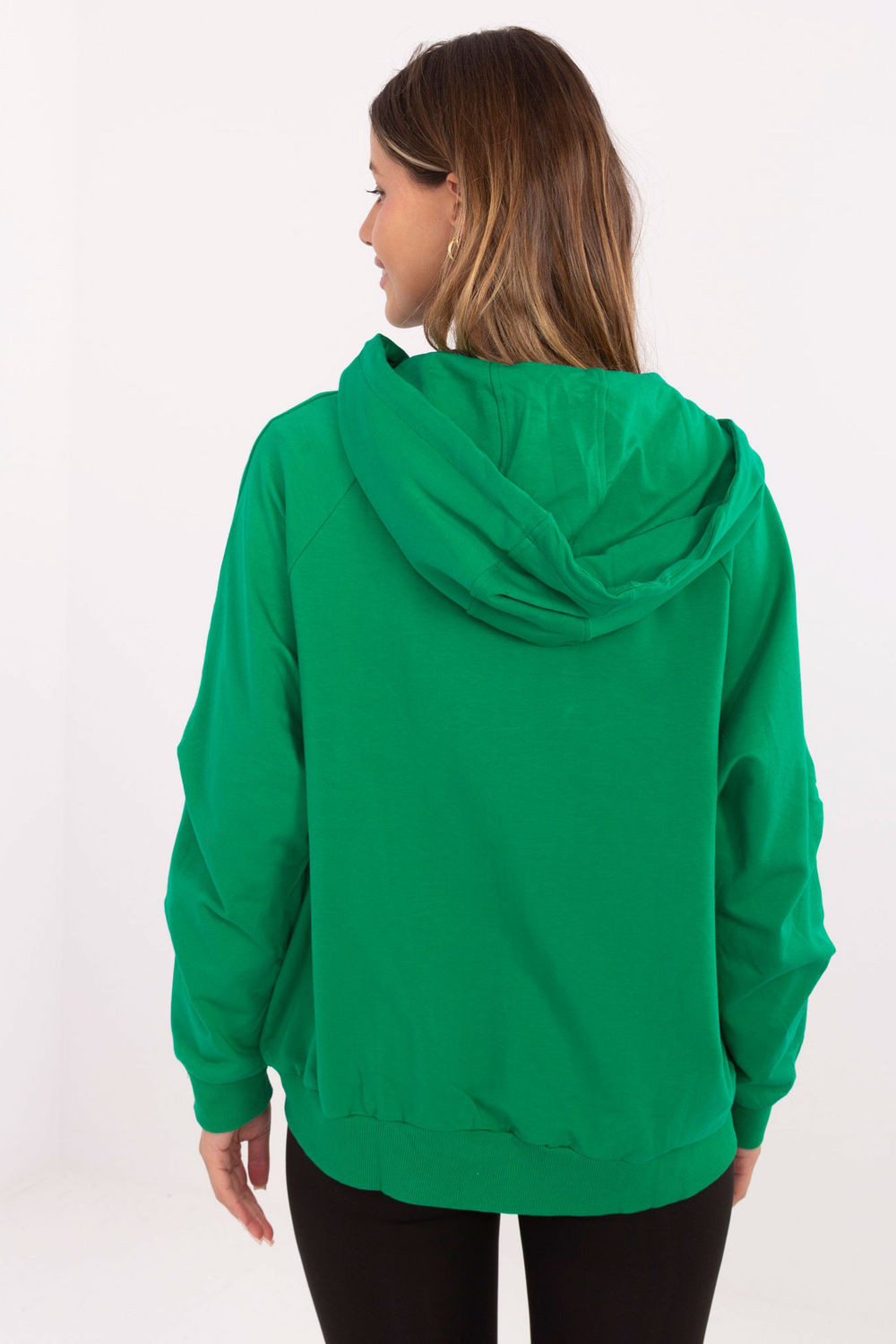 Klasická dámská mikina s casual charakterem, ideální na každý den. Vyrobená z příjemné bavlny s přídavkem elastanu, zaručuje pohodlné nošení a volnost pohybu. Hladký materiál a standardní délka dělají mikinu skvěle sladitelnou s džínami, legíny nebo teplákovými kalhotami. Model má dlouhý rukáv, praktickou kapuci a zip, co dodává funkčnost. Na přední straně jsou kapsy, perfektní na drobnosti nebo pro zahřátí rukou. Jedná se o univerzální kus oblečení, který se hodí na každou roční dobu.
