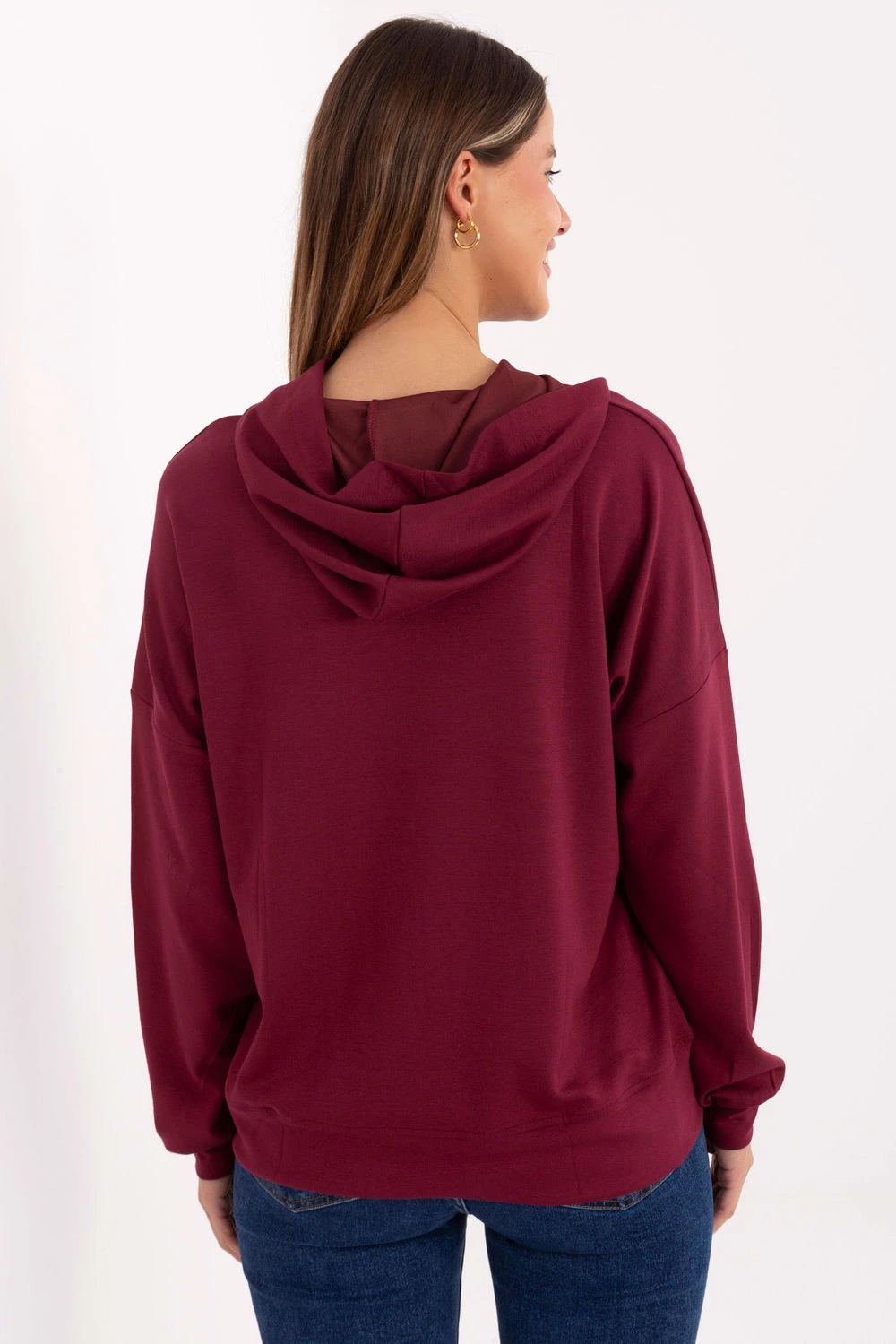 Elegantní dámská mikina s ležérním charakterem, ideální na každý den. Vyrobená z příjemné směsi viskózy, polyesteru a elastanu, poskytuje pohodlí nošení, pružnost a odolnost. Model s standardní délkou, dlouhým rukávem a kapucí je klasika v moderním provedení. Hladký materiál zajišťuje, že mikina je univerzální a snadno stylizovatelná, zatímco ozdobné nášivky na spodním lemu a kapuci jí dodávají originální, módní akcent. Bez zapínání zajistí volnost a pohodlí při nošení. Skvěle se hodí k džínům, legínám nebo teplákovým kalhotám, skvělý návrh na každodenní, volné stylizace.