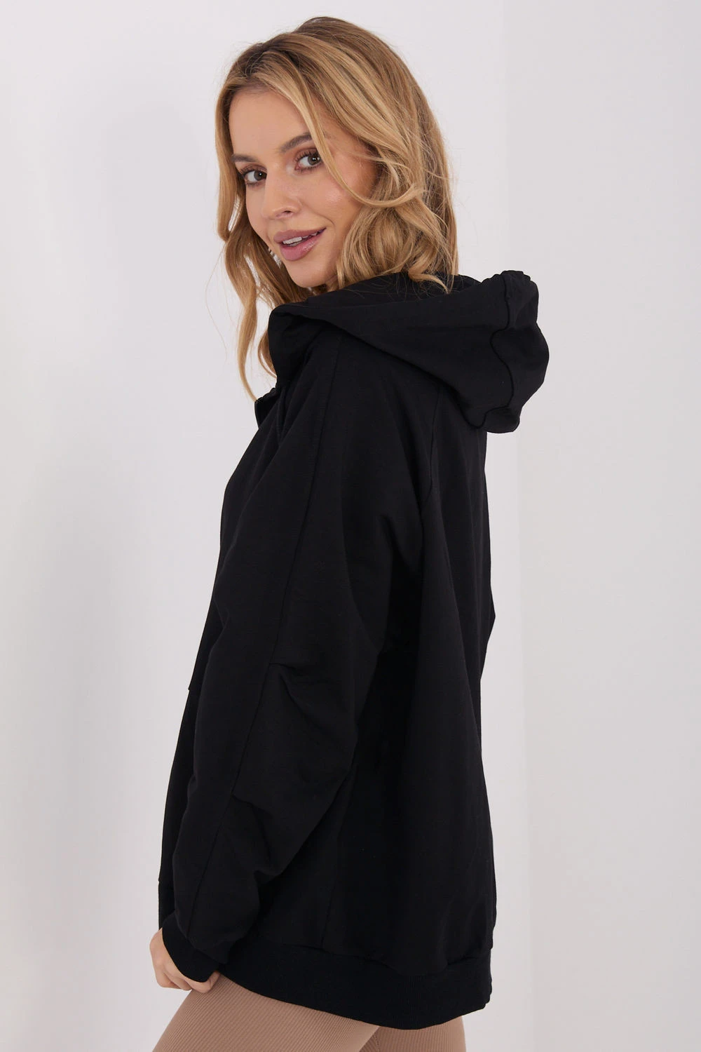 Klasická dámská mikina s ležérním charakterem, ideální na každý den. Vyrobená z příjemné bavlny s přídavkem elastanu, zaručuje pohodlí a volnost pohybu. Hladký materiál a standardní délka dělají z mikiny skvělý doplněk k džínům, legínám nebo teplákovým kalhotám. Model má dlouhý rukáv, praktickou kapuci a zip, co jí dodává funkčnost. Na přední straně jsou kapsy na zip, ideální na drobnosti nebo na zahřátí rukou. Jedná se o univerzální kousek oblečení, který se hodí do každého ročního období.