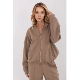 Tato dámská mikina ve stylu casual je ideální volbou pro každodenní pohodlné outfity. Vyrobená z kombinace polyesteru, viskózy a elastanu, poskytuje měkkost, pružnost a pohodlí při nošení. Model standardní délky má dlouhý rukáv a praktický stojánek, který dodává sportovní eleganci a chrání před chladem. Mikina se zapíná na zip, co usnadňuje oblékání a umožňuje nastavit úroveň pohodlí. Hladký materiál jí dodává univerzální charakter, a vložené kapsy zvyšují funkčnost a dělají z ní skvělý kousek na každý den. Jedná se o nadčasový kus šatníku, který se snadno sladí s džíny, legíny nebo teplákovými kalhotami.