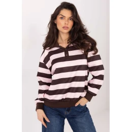 Dámská volná mikina s nadčasovým a univerzálním stylem, ideální pro každodenní outfity. Model se vyznačuje módním pruhovaným vzorem, který dodává celku svěžest a lehce sportovní charakter. Mikina je vyrobena z vysoce kvalitní viskózy s přídavkem elastanu, co zaručuje měkkost, pružnost a vysoký komfort nošení. Střih standardní délky s dlouhým rukávem dobře padne na postavě a osvědčí se po celou sezónu. Zapínání na knoflíky na přední straně typu polo v kombinaci s klasickým límečkem dodá mikině elegantní, ale zároveň volný vzhled. Jedná se o skvělý návrh pro ženy, které ocení pohodlí spojené s propracovanými detaily. Mikina skvěle ladí s džíny, látkovými kalhotami nebo sukní, vytvářející stylové sestavy na každý den.