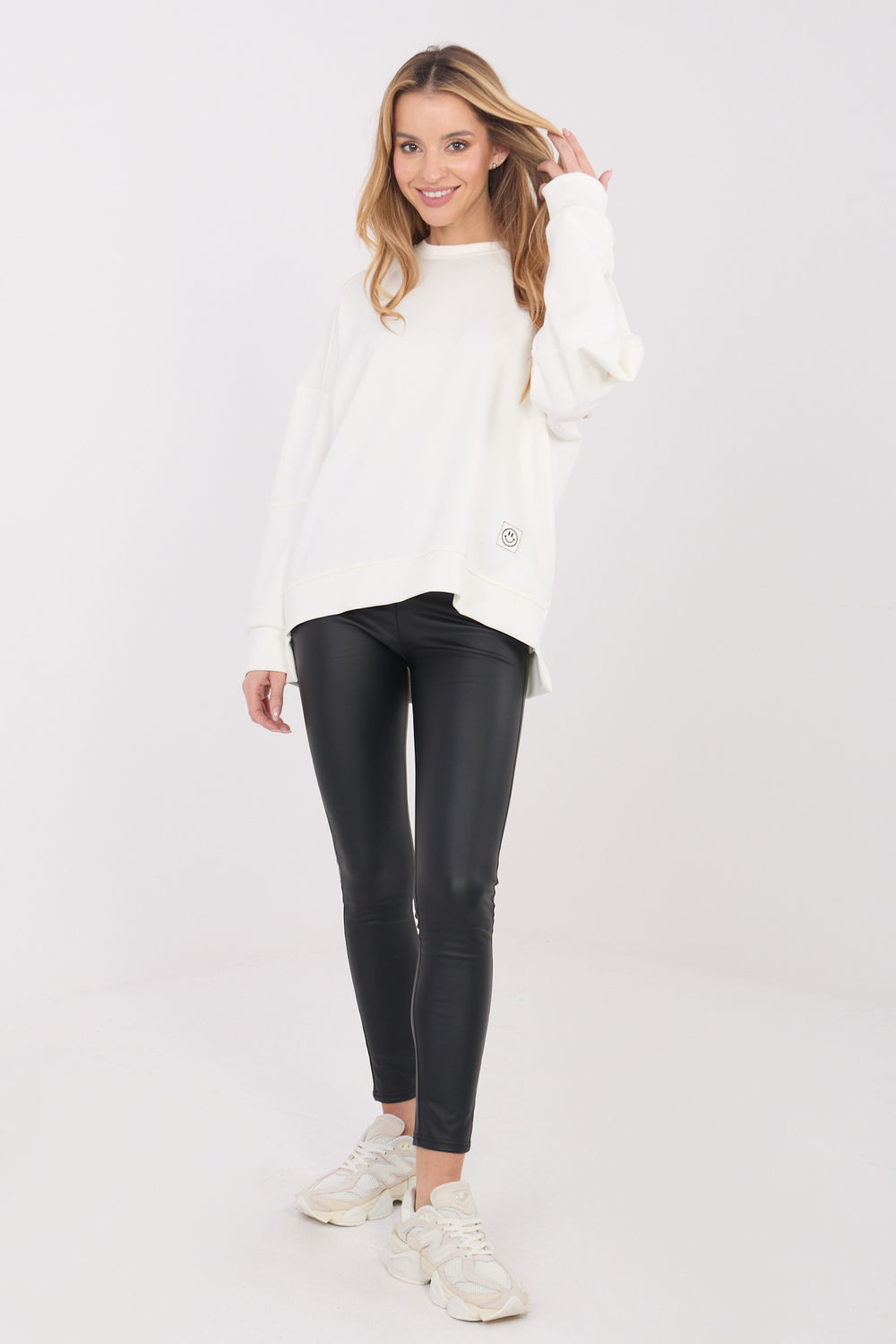 Dámský casual svetr je pohodlný a stylový návrh na každý den. Vyrobený z příjemné viskózy s přídavkem elastanu, zajišťuje pohodlí nošení, elasticitu a dobře padne ke siluetě. Hladký vzor zdůrazňuje jeho univerzální charakter a dělá z něj ideální kombinaci s mnoha kusy oblečení. Standardní délka se lehce prodlouženým zády dodává moderní vzhled a jemně zúží siluetu. Dlouhý rukáv a kulatý výstřih zaručují pohodlí a volnost pohybů. Model bez zapínání, doplněný o malou nášivku dole vlevo, která představuje decentní, módní akcent.