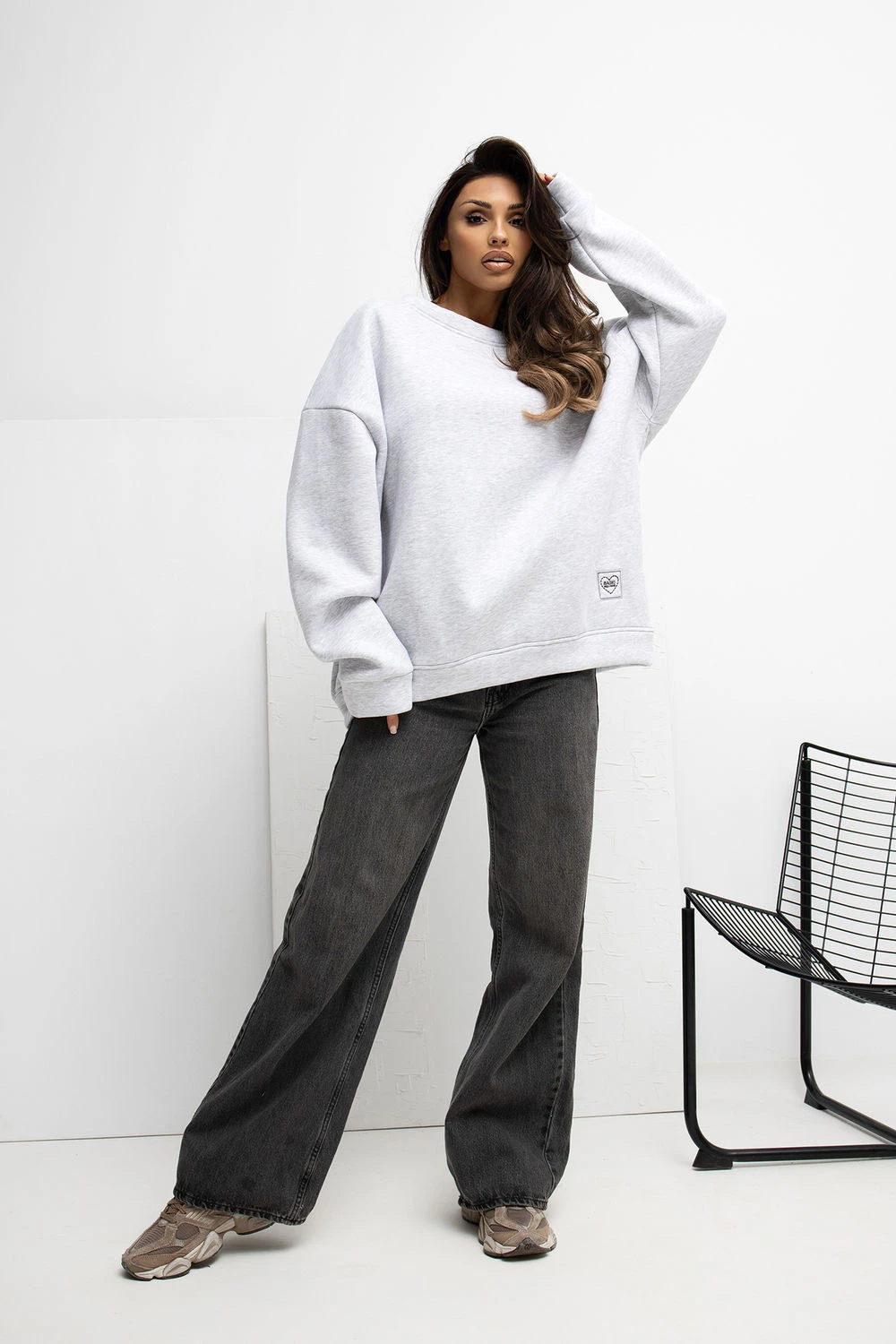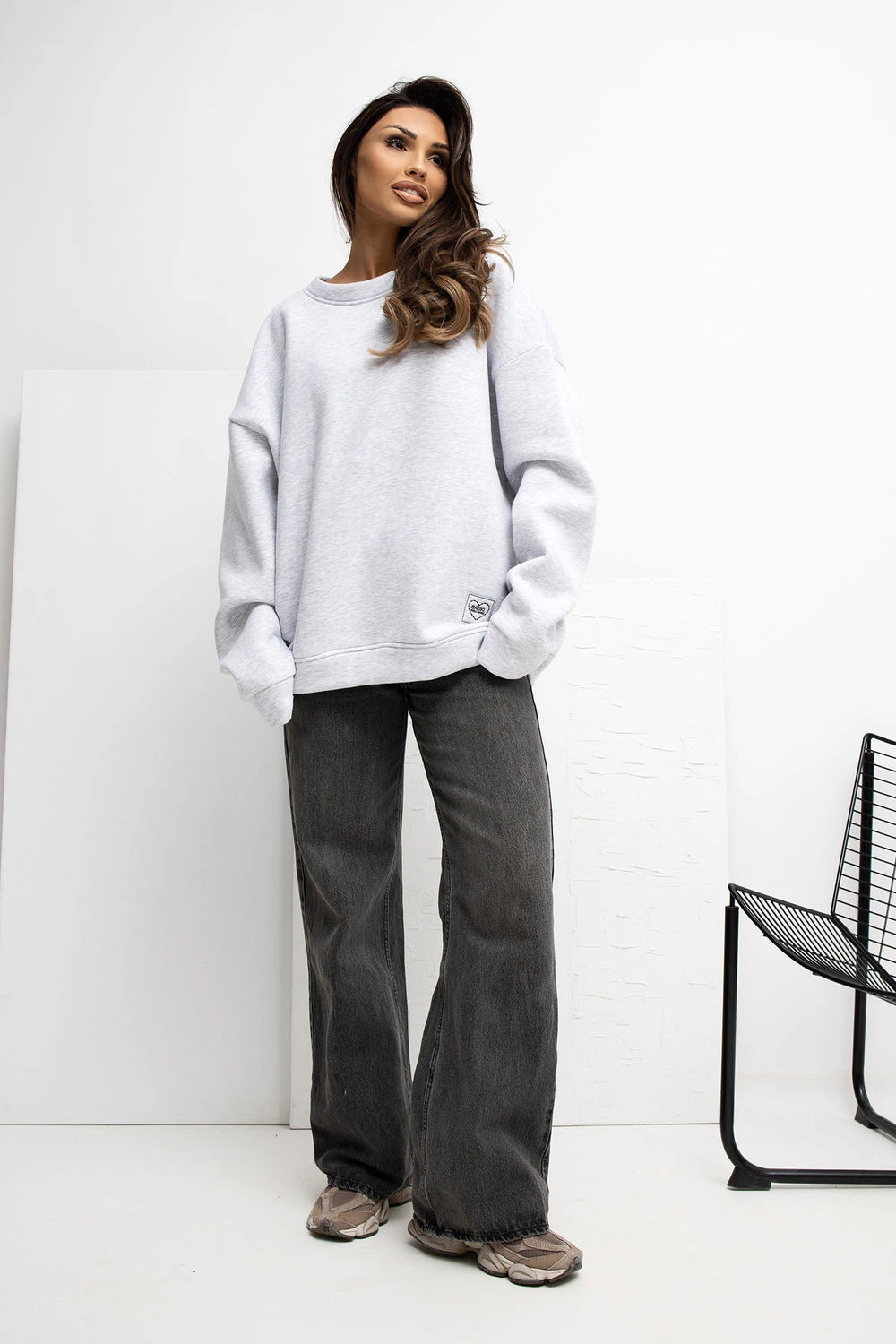 Dámská mikina ve stylu casual je pohodlnou volbou na každý den. Vyrobena z měkké bavlny s přídavkem elastanu poskytuje pohodlí nošení, prodyšnost a pružnost, díky čemuž se dobře přizpůsobuje postavě. Hladký vzor jí dodává univerzální charakter a umožňuje snadno ji sladit s různými styly. Model s standardní délkou, dlouhým rukávem a kulatým výstřihem zaručuje volnost pohybů a pohodlí při nošení. Mikina nemá zapínání, co zdůrazňuje její klasický a minimalistický styl. Další výhodou je lehké zateplení, které se hodí do chladnějších dnů, a decentní malá nášivka umístěná dole vlevo, která slouží jako jemný ozdobný prvek.