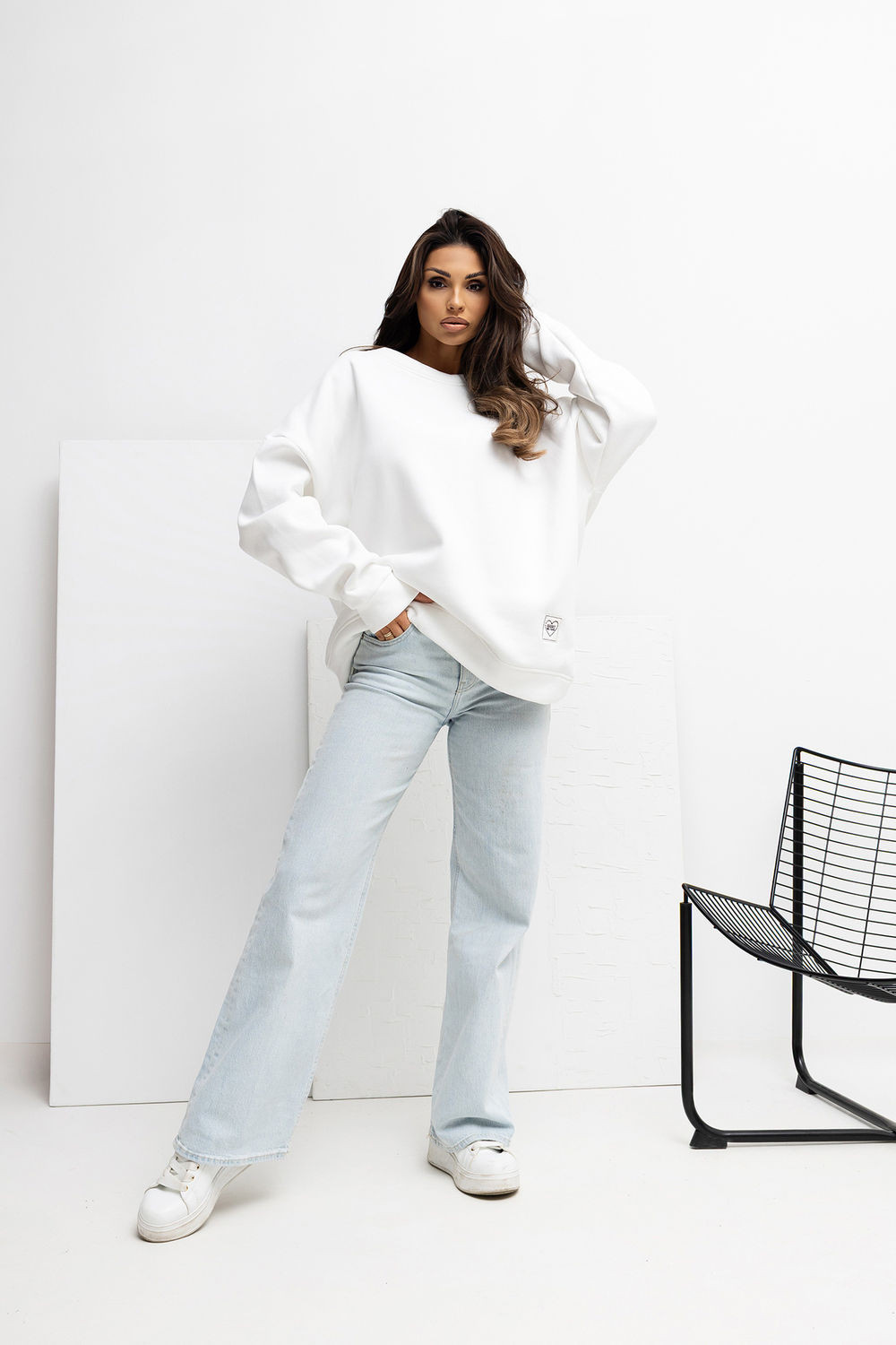 Dámská mikina ve volném stylu je pohodlným návrhem na každý den. Vyrobená z měkké bavlny s přídavkem elastanu poskytuje pohodlí, prodyšnost a pružnost, díky čemuž se dobře přizpůsobuje postavě. Hladký vzor jí dodává univerzální charakter a usnadňuje sladění s různými styly. Model s klasickou délkou, dlouhým rukávem a kulatým výstřihem zaručuje volnost pohybu a pohodlí při nošení. Mikina nemá zapínání, co zdůrazňuje její klasický a minimalistický styl. Další výhodou je lehké zateplení, které se hodí do chladnějších dnů, a decentní malá nášivka umístěná dole vlevo, která představuje jemný ozdobný prvek.