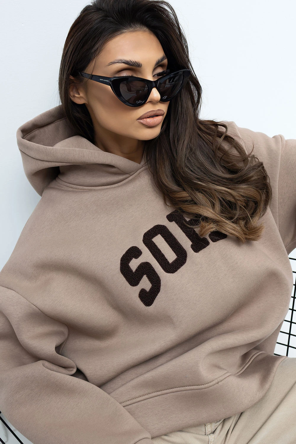 Dámská mikina v casual stylu je ideální volbou na každý den, kombinuje pohodlí s módním vzhledem. Vyrobená z vysoce kvalitní bavlny s přídavkem elastanu je měkká, elastická a příjemná na nošení, poskytuje pohodlí po celý den. Na přední straně je kontrastní nápis, který dává mikině moderní a výrazný charakter. Model má standardní délku, dlouhý rukáv a praktickou kapuci, skvěle se hodí na chladnější dny. Mikina se obléká přes hlavu, bez zapínání, zaručuje volnost a snadné použití. Další výhodou je zateplení, které zvyšuje tepelný komfort a činí ji ideální volbou na podzim a zimu.