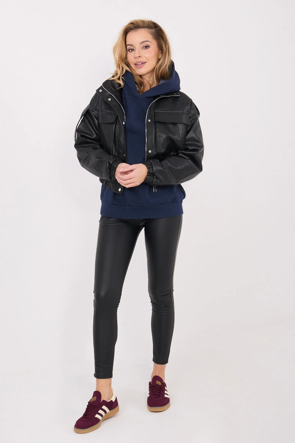 Casualová dámská mikina je pohodlný a stylový návrh na každý den. Vyrobená z vysoce kvalitní bavlny s přídavkem elastanu poskytuje pohodlí nošení, pružnost a dobrou přizpůsobivost postavě. Hladký materiál jí dodává univerzální charakter, který lze snadno sladit s mnoha styly. Model se standardní délkou, dlouhým rukávem a kapucí se skvěle hodí na chladnější dny. Absence zapínání zdůrazňuje sportovně-ležérní styl mikiny a ozdobné vnější švy jí dodávají moderní a originální vzhled. Další výhodou je zateplení, které zvyšuje tepelný komfort, čímž se mikina stává ideální volbou na podzim a zimu.