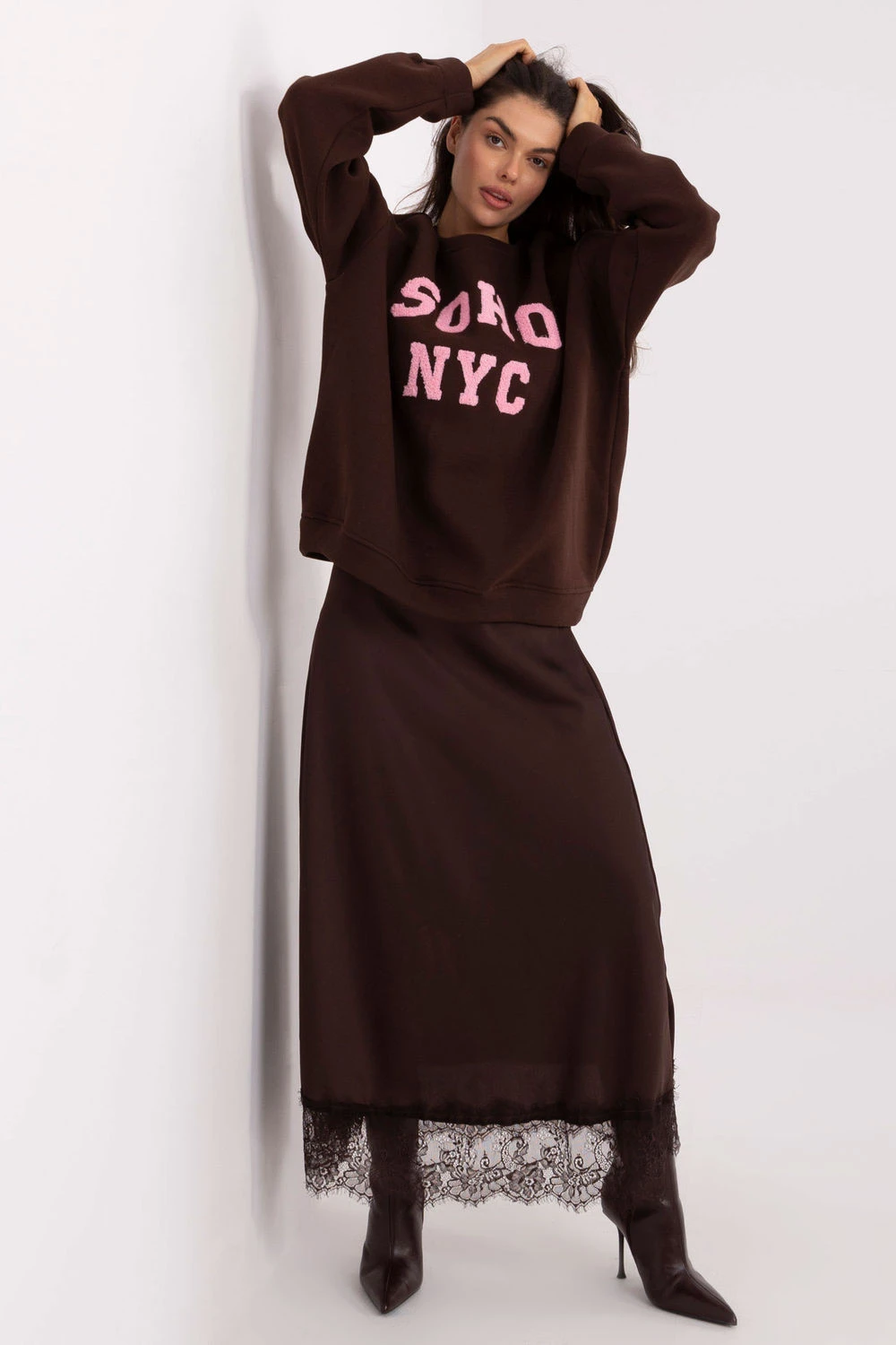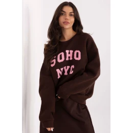 Casualová dámská mikina je pohodlný a stylový návrh na každý den. Vyrobená z vysoce kvalitní směsi bavlny a polyesteru poskytuje pohodlí nošení, odolnost a příjemný pocit tepla. Zateplení zajišťuje, že mikina se skvěle hodí do chladnějších dnů. Model s standardní délkou, dlouhým rukávem a klasickým kulatým výstřihem zaručuje pohodlí a univerzální charakter. Nápis umístěný na přední straně dodává mikině módní, moderní vzhled a představuje výrazný akcent stylizace. Absence zapínání zdůrazňuje její sportovně-pohodový styl, ideální pro každodenní kombinace s džíny, legíny nebo teplákovými kalhotami.